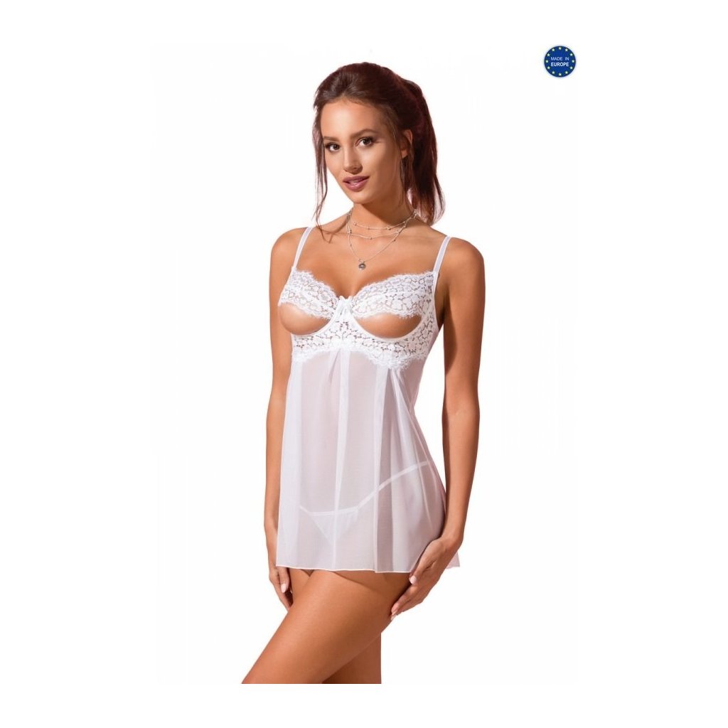 Něžná bílá košilka pro zvýraznění vašeho romantického já! Její střih zvýrazní vaše přednosti a přiláká pozornost především na prsa. Podprsenka je poloprůhledná a vaše ňadra v ní budou vypadat opravdu skvostně. Oblečte si ji a dejte najevo svoji výjimečnost! Material: 75%Polyester, 15%Polyamid, 10%ElastanDoplňkové parametry