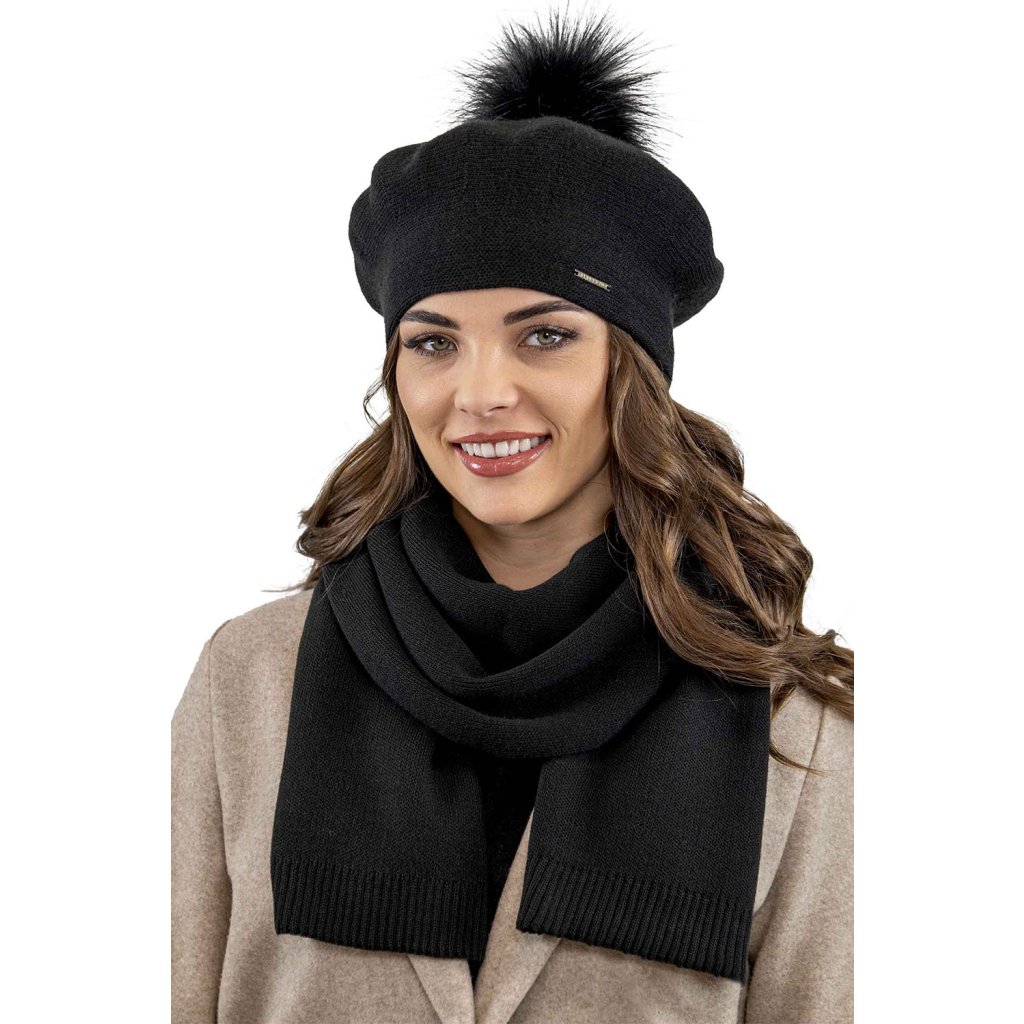 Elegantní dámská souprava: baret s bambulí a šála.- klasický střih