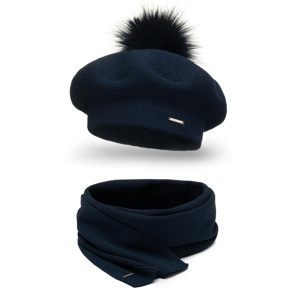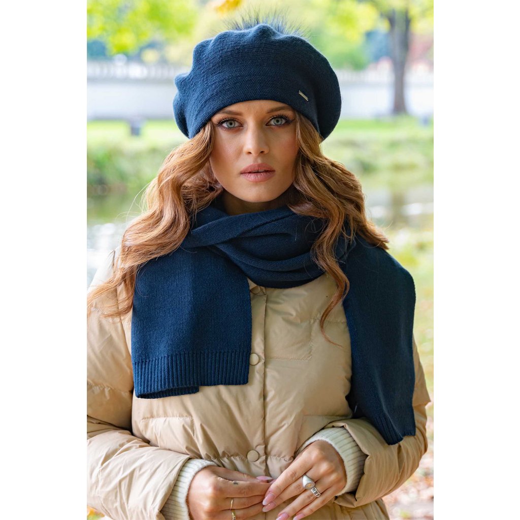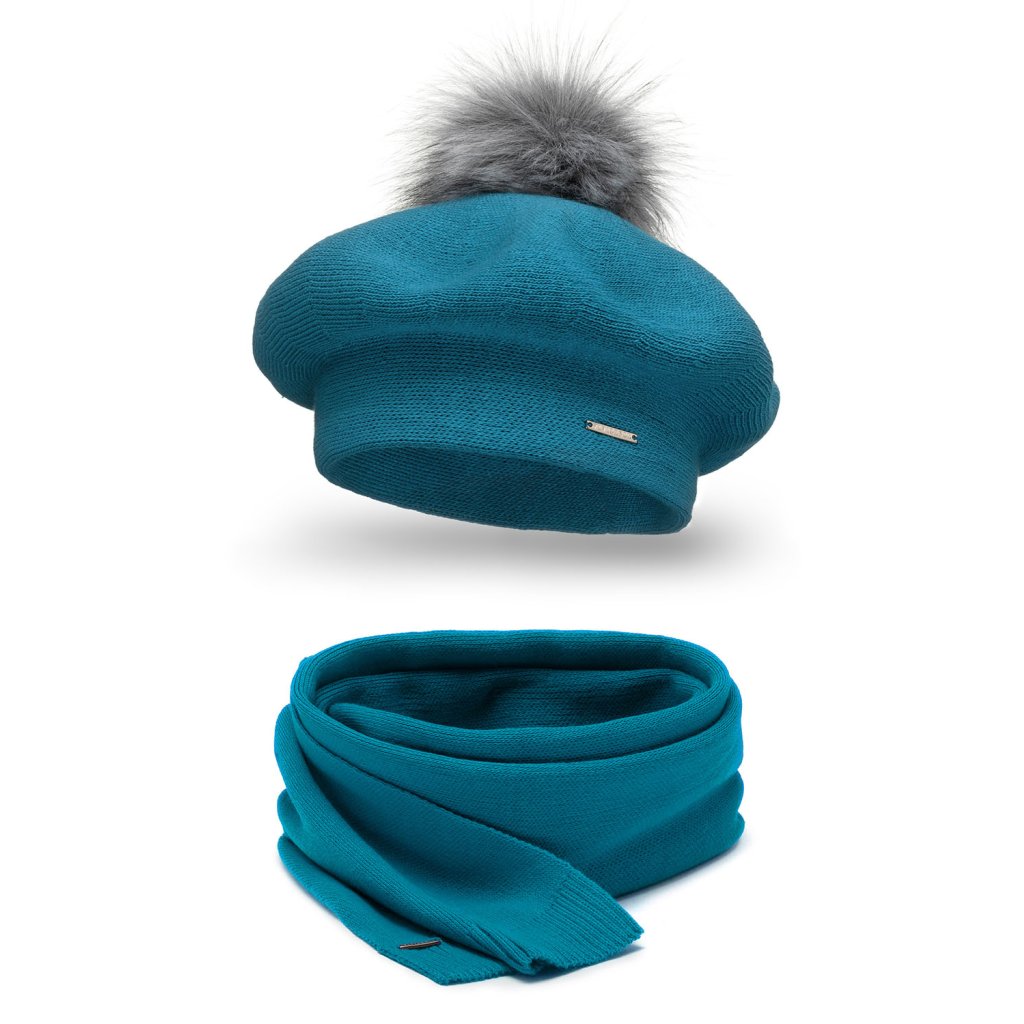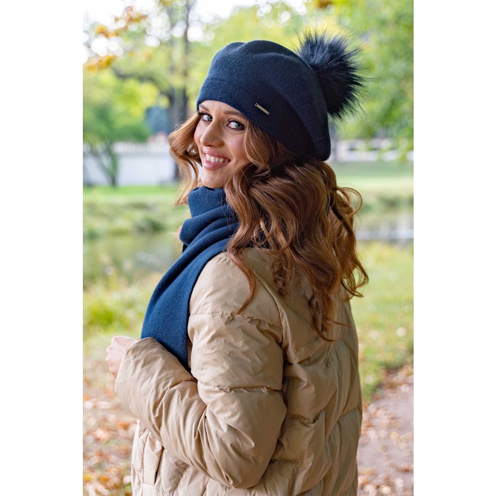 Elegantní dámská souprava: baret s bambulí a šála.- klasický střih