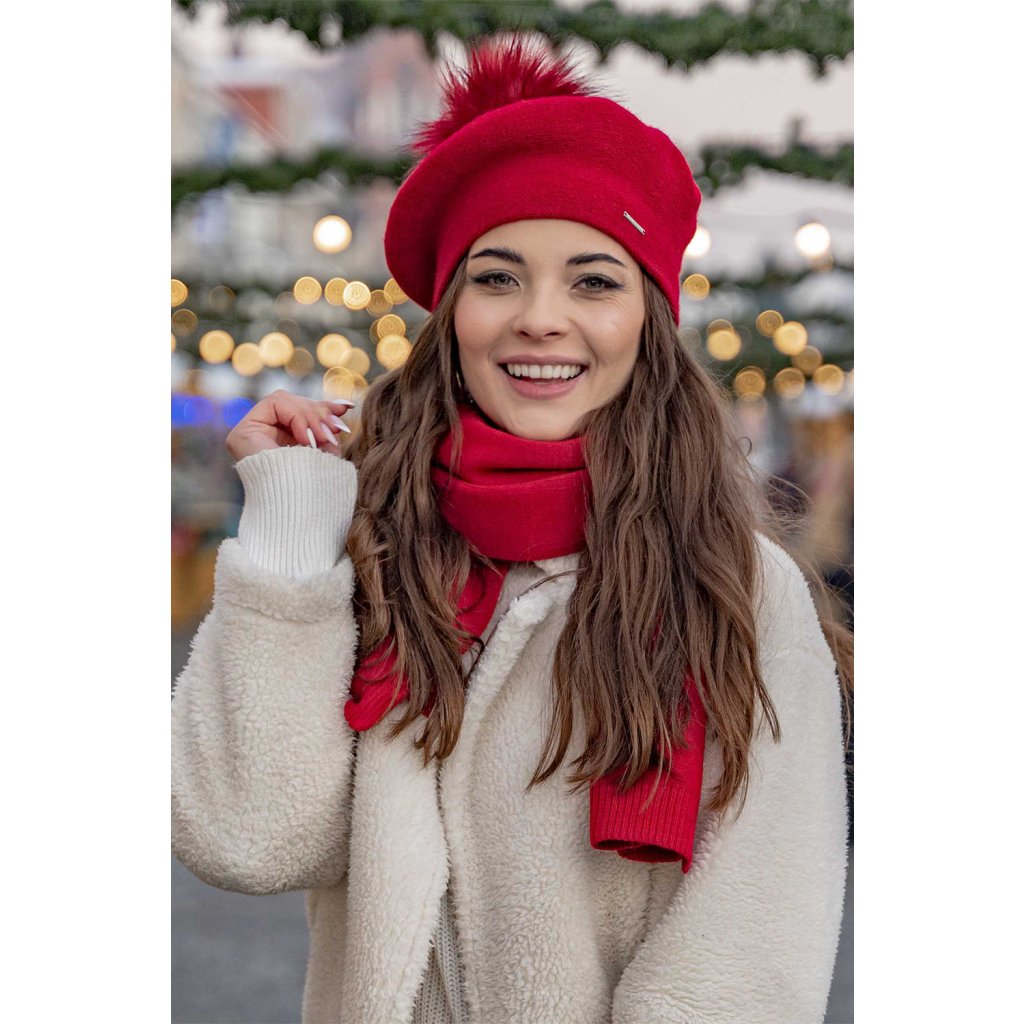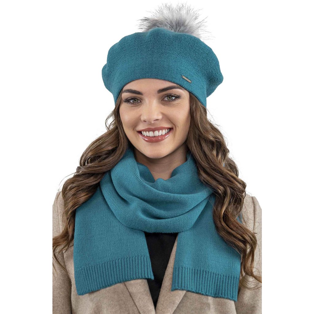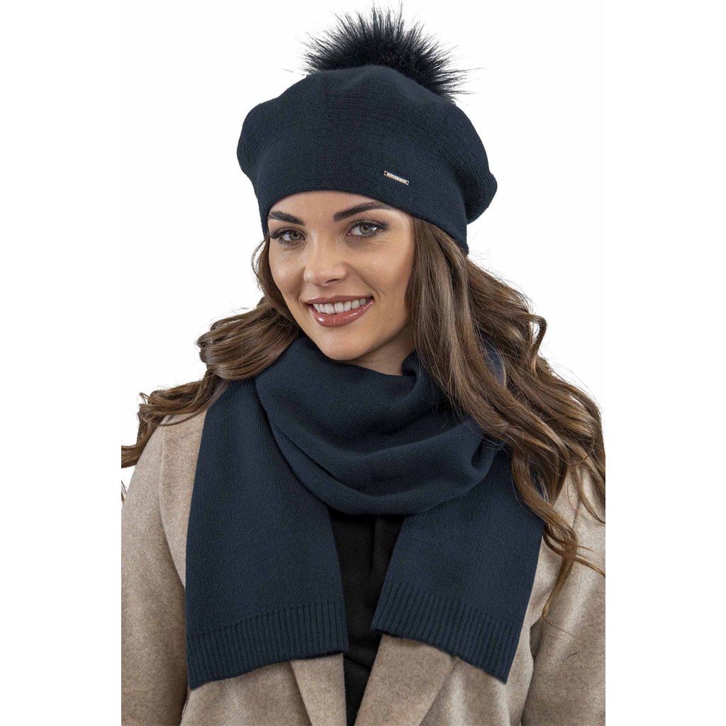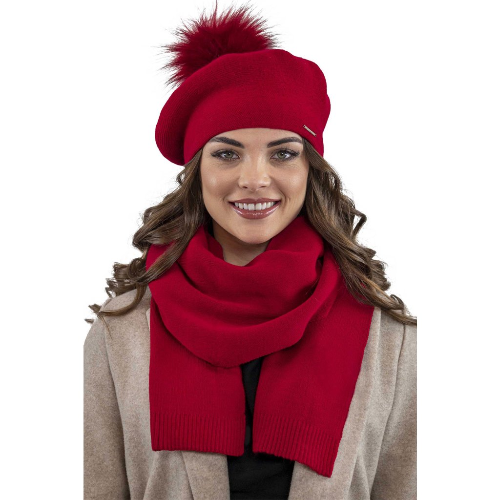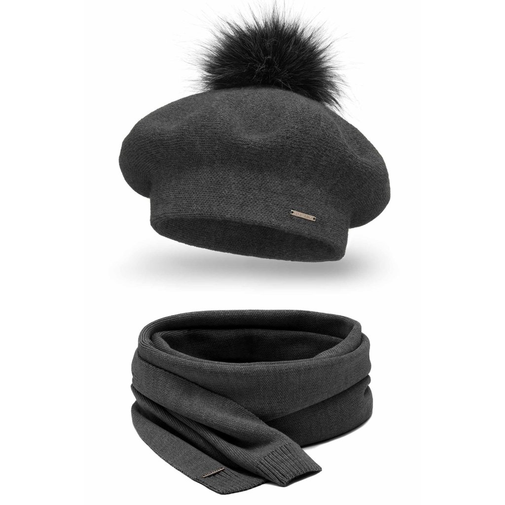 Elegantní dámská souprava: baret s bambulí a šála.- klasický střih