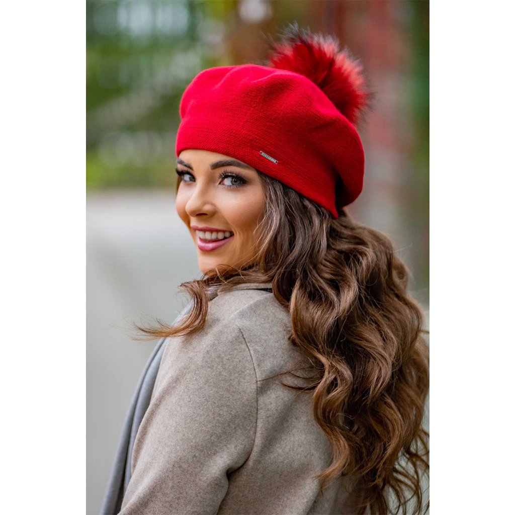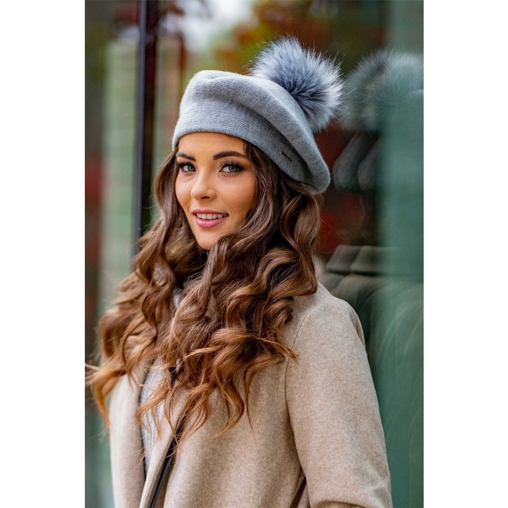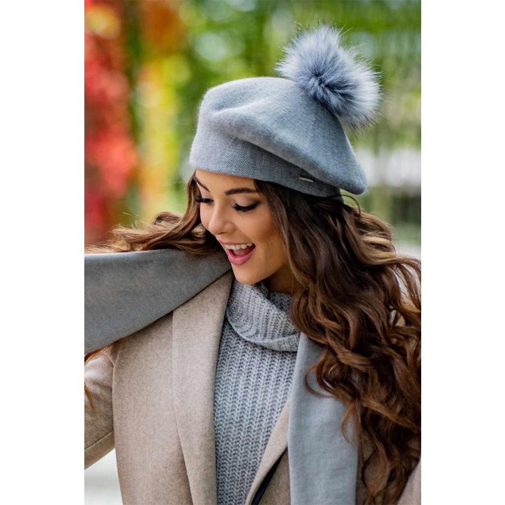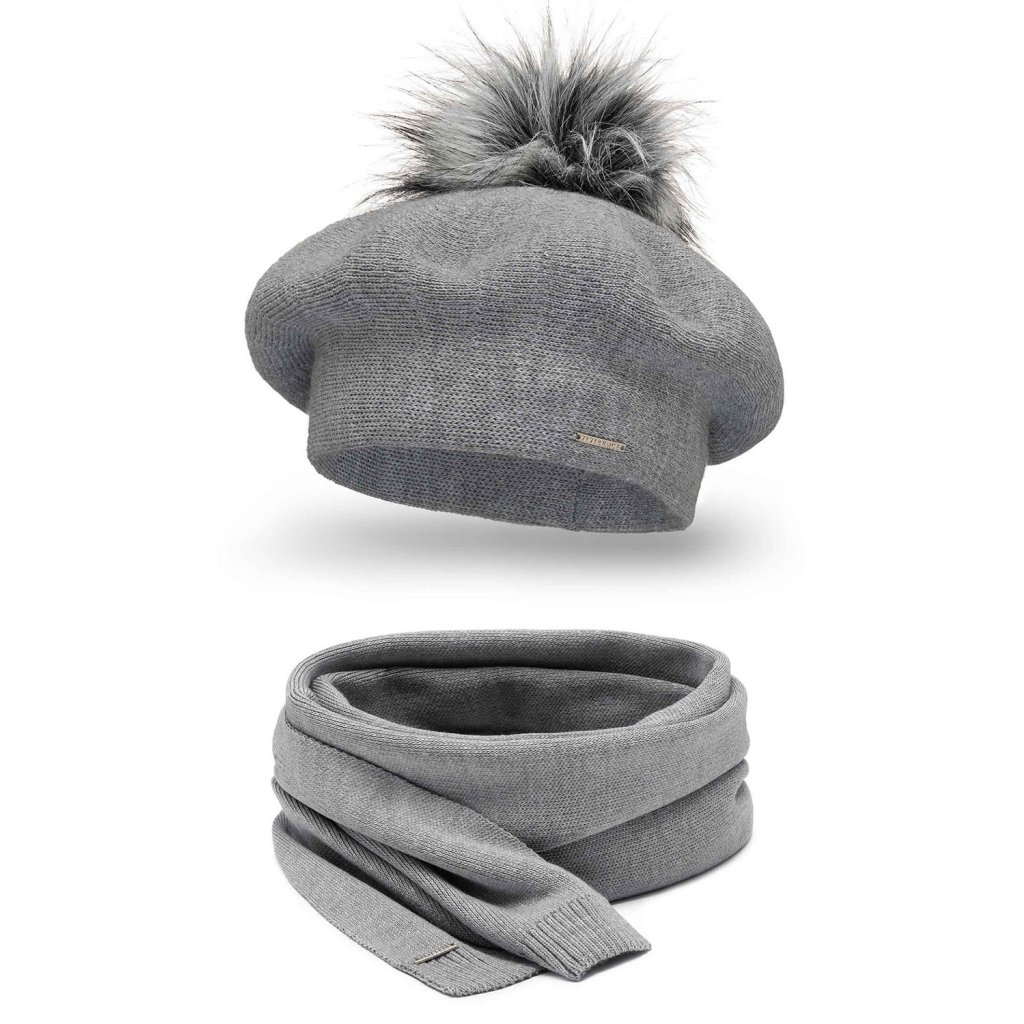 Elegantní dámská souprava: baret s bambulí a šála.- klasický střih