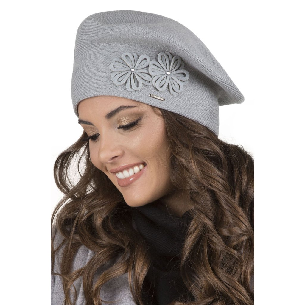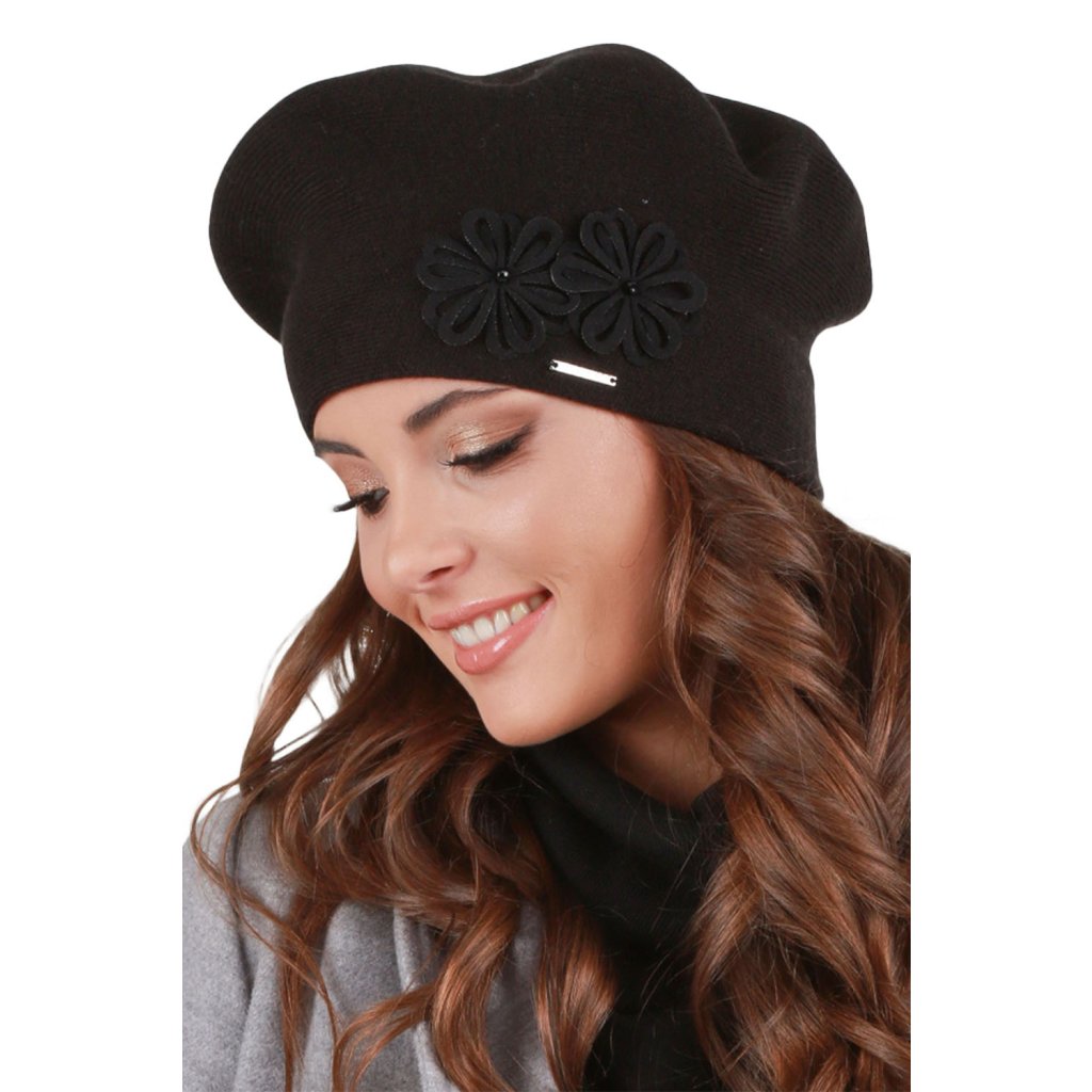 legantní dámský baret.- klasický střih- z hřejivé příze s přídavkem vlny- přední strana zdobená květinovou aplikací- baret dokonale přiléhá k hlavě- skvělý nápad na dárekSložení: Složení: 40% akryl, 25% viskóza, 20% vlna, 15% elastan.Doplňkové parametry