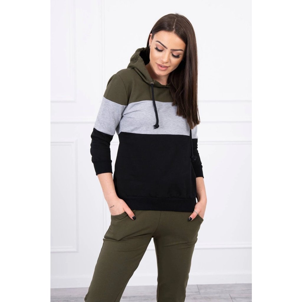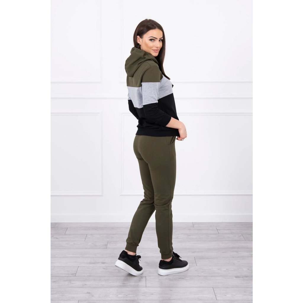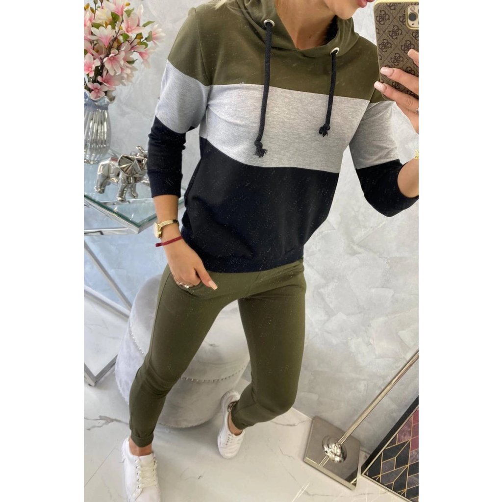 Barevná pruhovaná souprava khaki+šedá