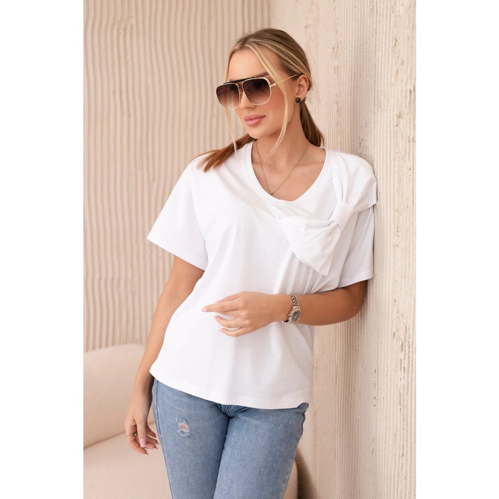 Bavlněná halenka s ozdobnou mašlí je elegantním a okouzlujícím kouskem oděvu, který dodá jemnost a sofistikovanost každému stylingu. Tato halenka je vyrobena z vysoce kvalitní bavlny a je pohodlná na celodenní nošení. Její jedinečnost spočívá v ozdobné mašličce umístěné na výstřihu, která jí dodává jemnost a ženský půvab. Tato halenka, ideální pro zvláštní příležitosti, rande nebo setkání s přáteli, se budete cítit elegantně a stylově a dodá vašemu vzhledu jemnost a jedinečnost. Velikost je univerzální a bude vhodná pro ženy, které nosí velikost S, M nebo L.