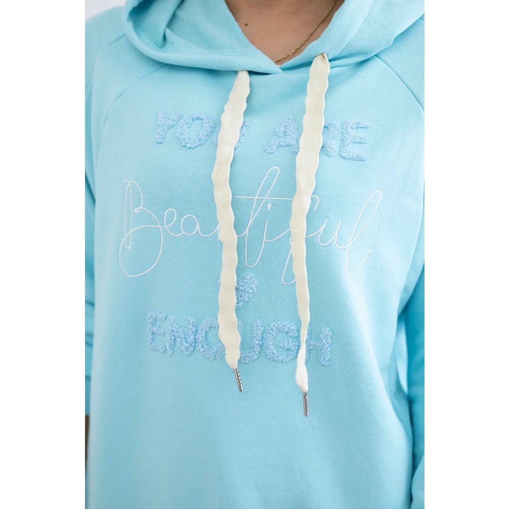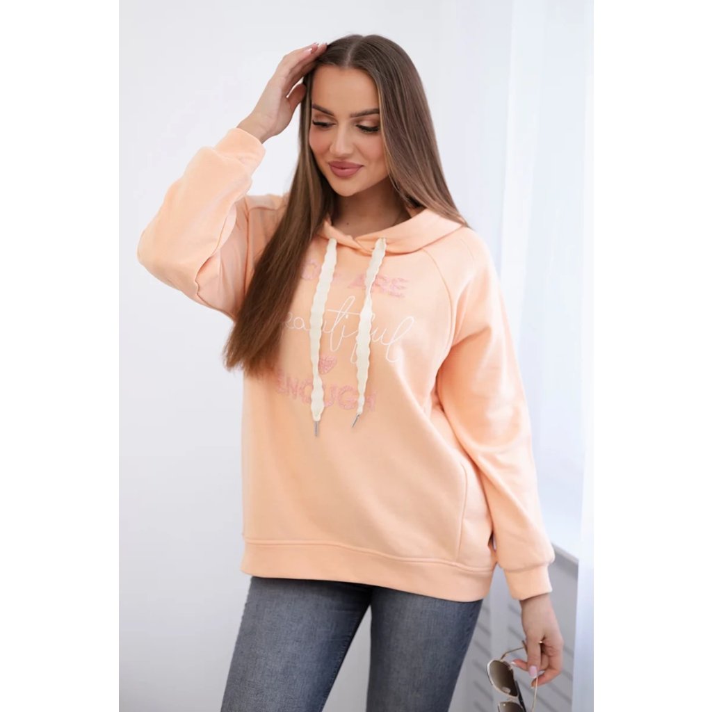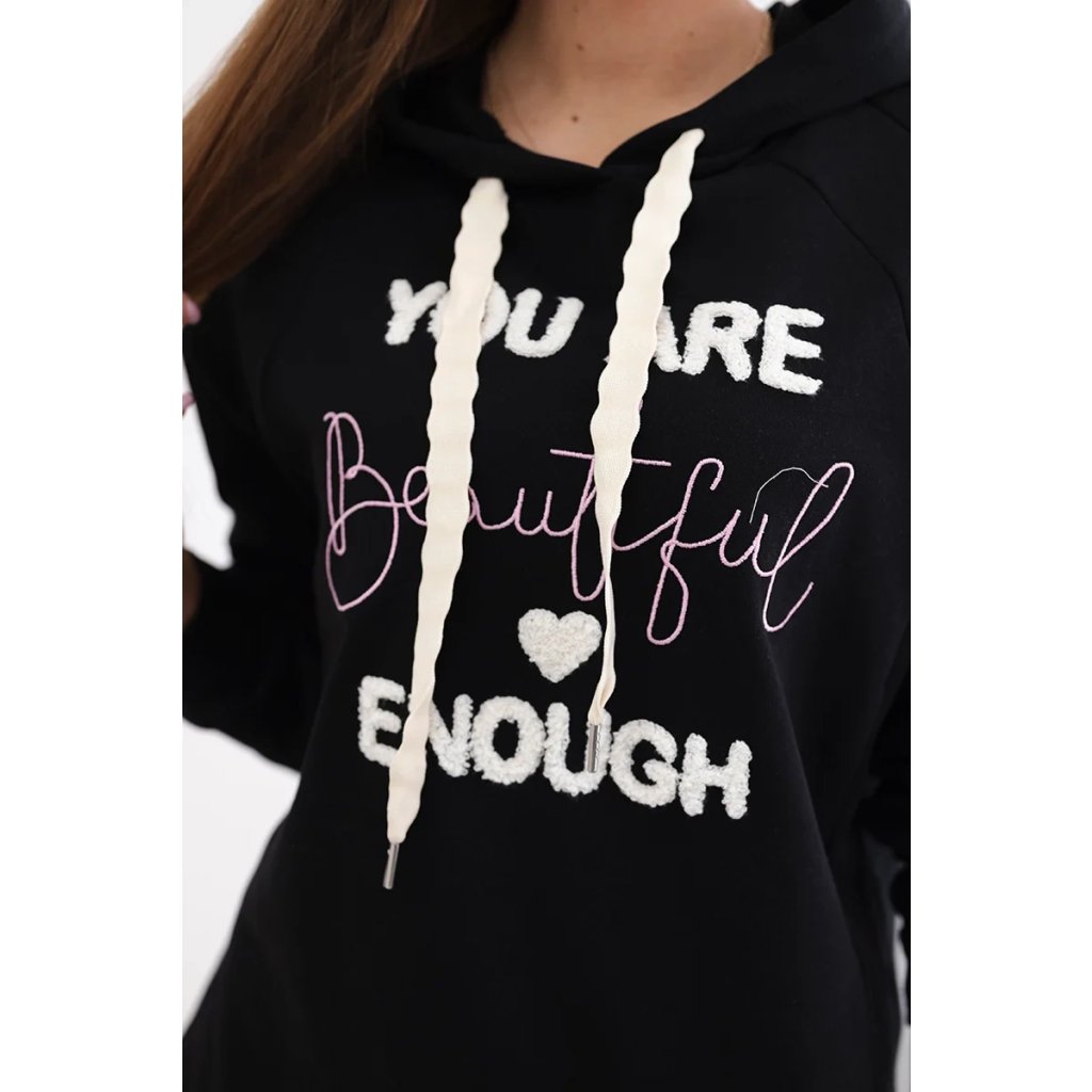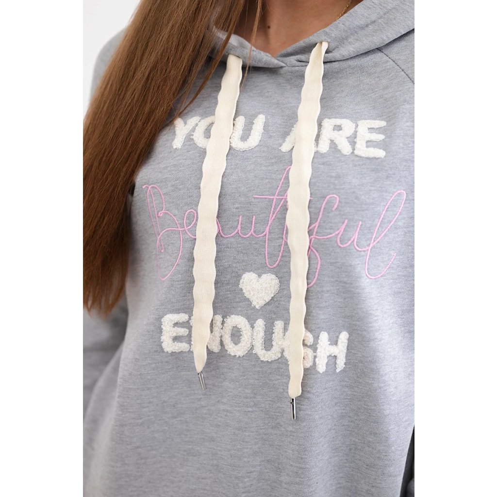Bavlněná mikina s kapucí, zdobená nápisem "Beautiful", je jedinečným kouskem oděvu, který dodá kouzlo a výraznost každému stylingu. Tato mikina vyrobená z vysoce kvalitní bavlny zajišťuje nejen pohodlí při nošení, ale také odolnost a pohodlí. Kapuce dodává charakter a praktičnost, poskytuje ochranu před chladem a větrem. Nápis "Beautiful" dodává mikině jedinečné poselství, dodává pozitivní energii a sebevědomí. Je to perfektní volba pro lidi, kteří chtějí vyjádřit svou krásu a individualitu prostřednictvím svého šatníku. Velikost je univerzální a bude vhodná pro ženy, které nosí velikost S, M nebo L.