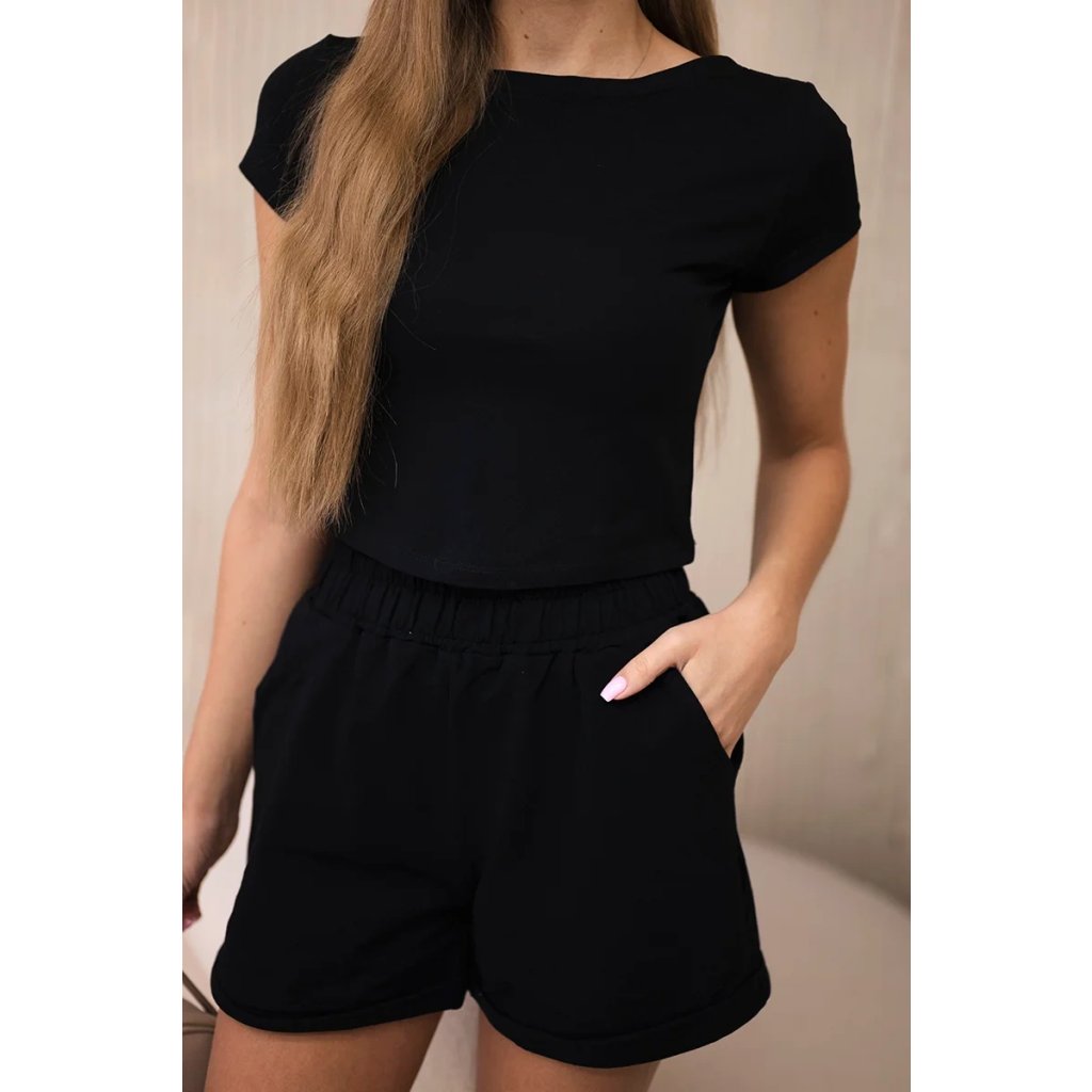 Představujeme vám módní sadu. Sada se skládá z halenky a šortek. Šortky s kapsami s elastickým pasem a vázáním. Sada je vyrobena z vysoce kvalitního materiálu. Velikost je univerzální a vyhovuje dámám ve velikostech S, M