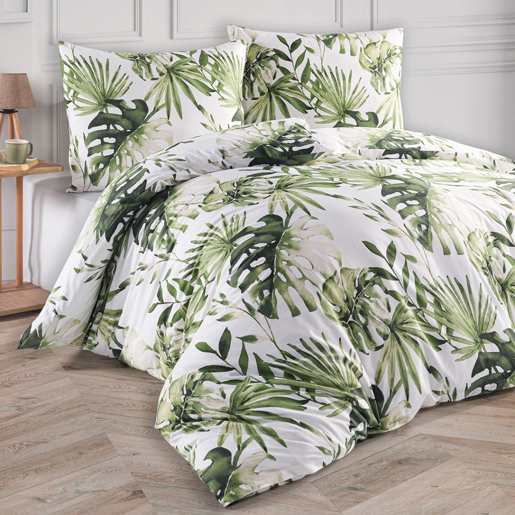 Bavlněné povlečení s velkými listy cizokrajné Monstery, vytvoří ve Vaší ložnici oázu klidu