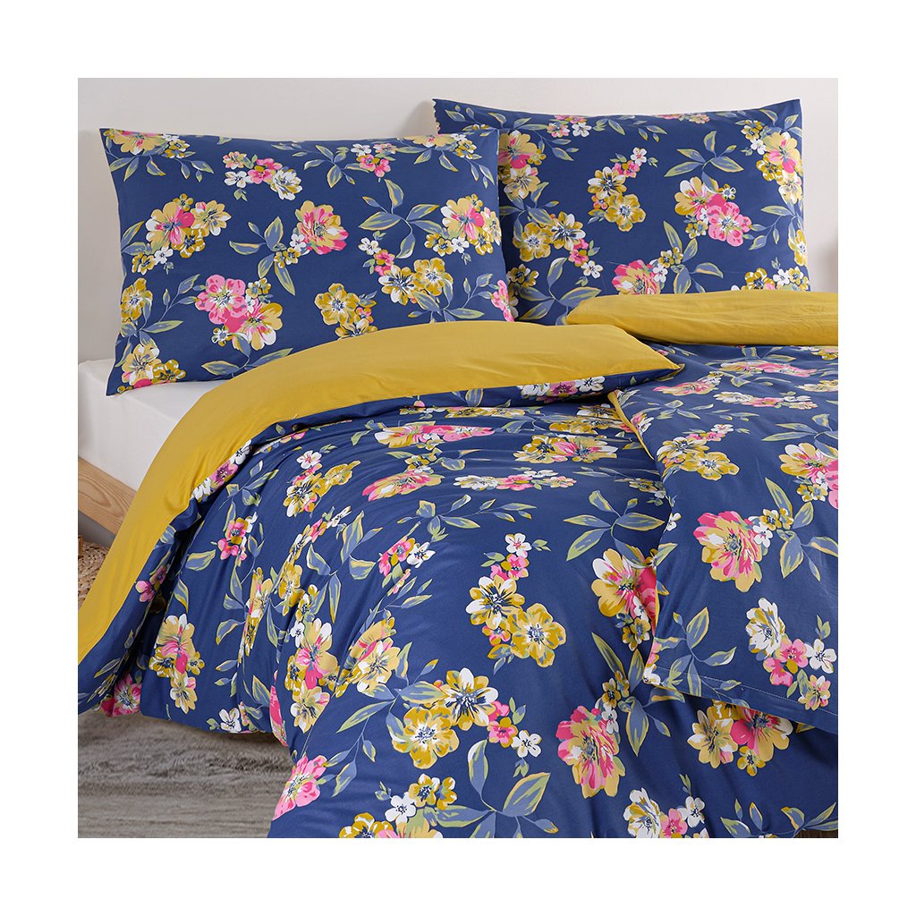 Povlečení snadno zkombinujete s velikou škálou barevných prostěradel například s tmavě modrou, hořčicovou, bílou či růžovou