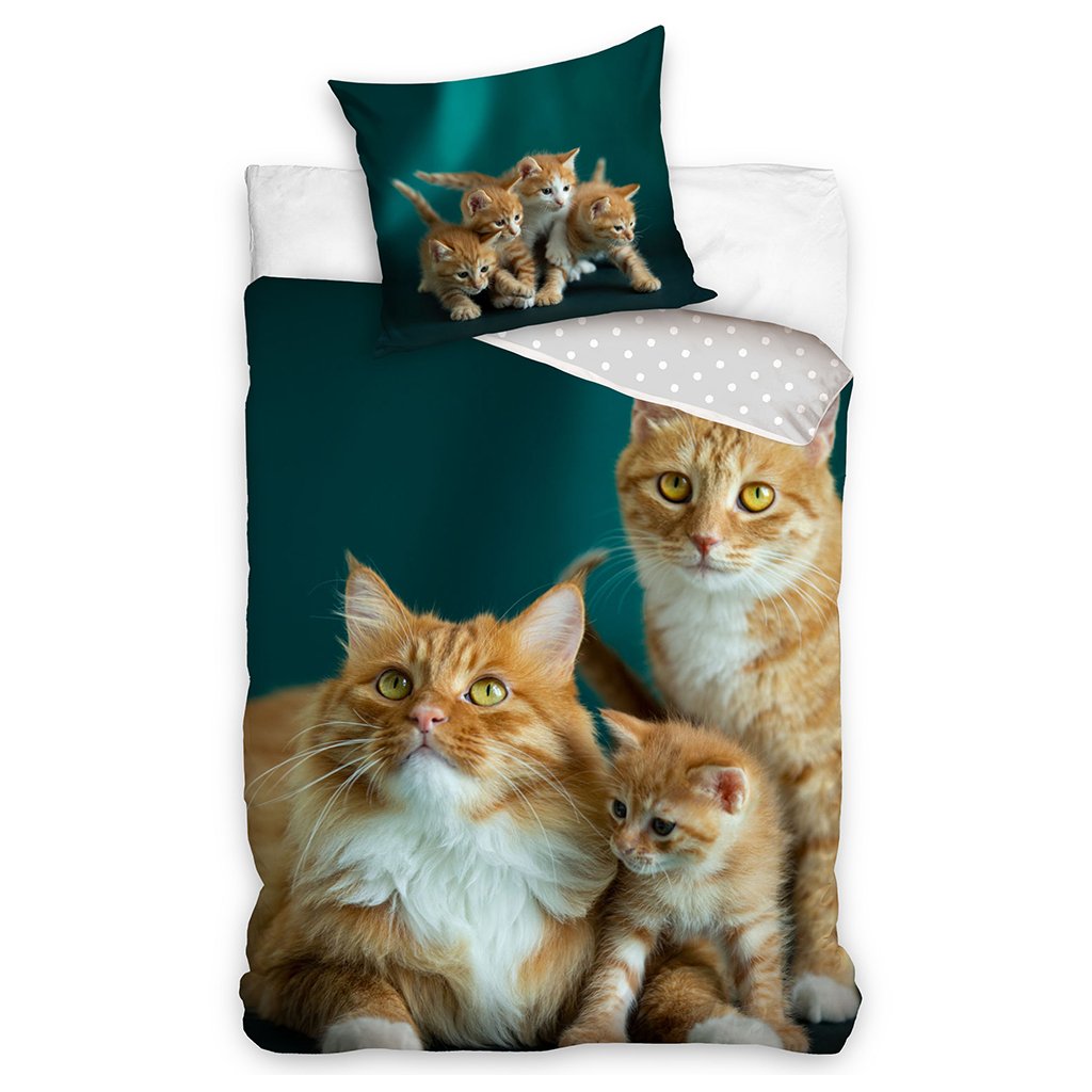 Kočičí rodinka na bavlněném povlečení
