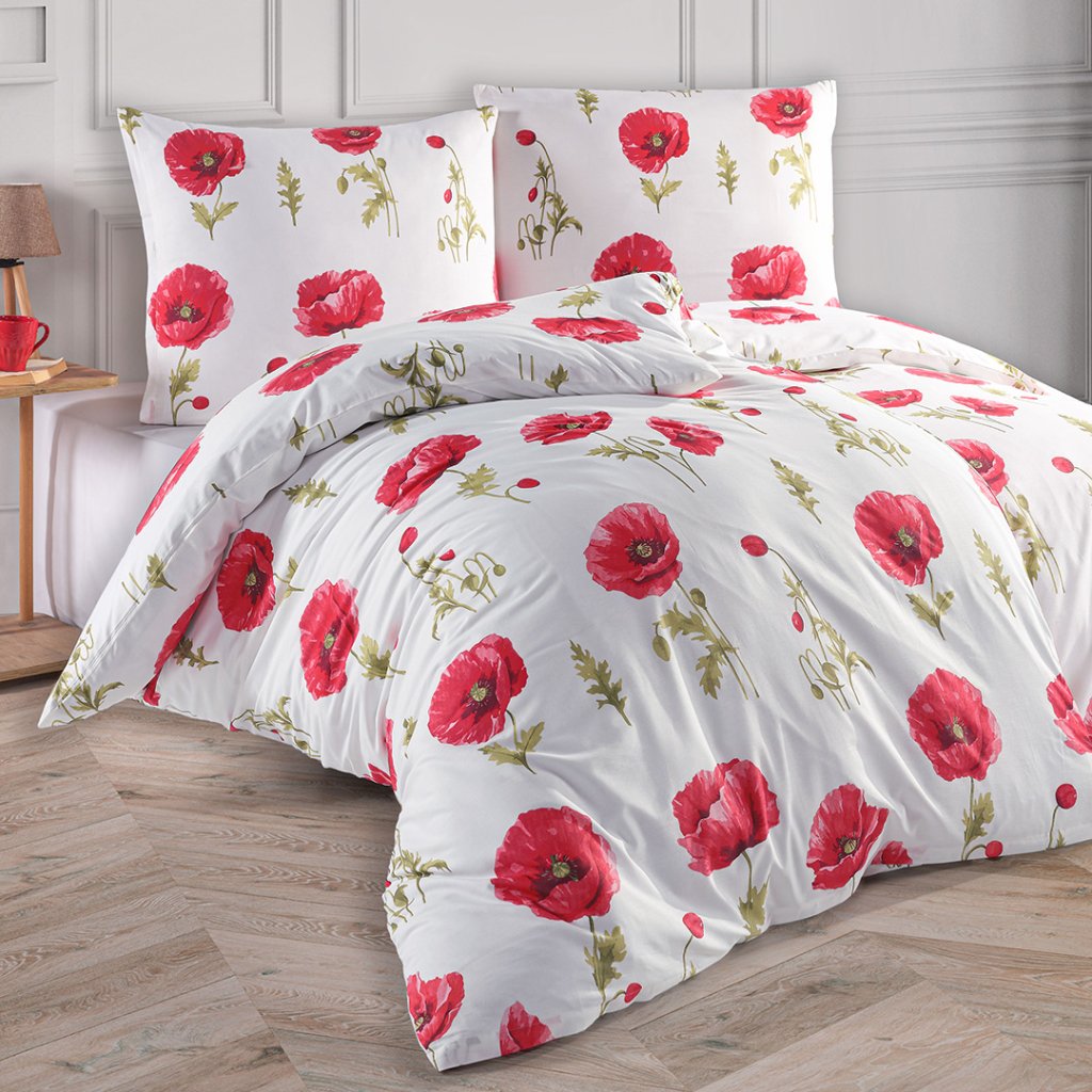 Bavlněné povlečení s červenými květy máku, je úžasnou variantou pro Vaše ložnice