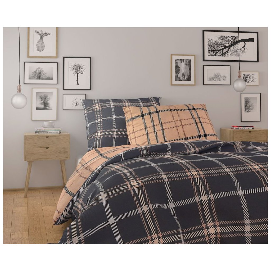 Bavlněné povlečení NORDIC COLLECTION 140x200, 70x90cm KÁRO tmavě hnědé