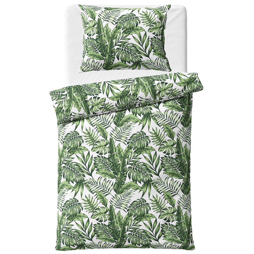 Toto bavlněné povlečení přináší do interiéru atmosféru tropické přírody a promění vaši postel v zelenou oázu klidu a pohodlí