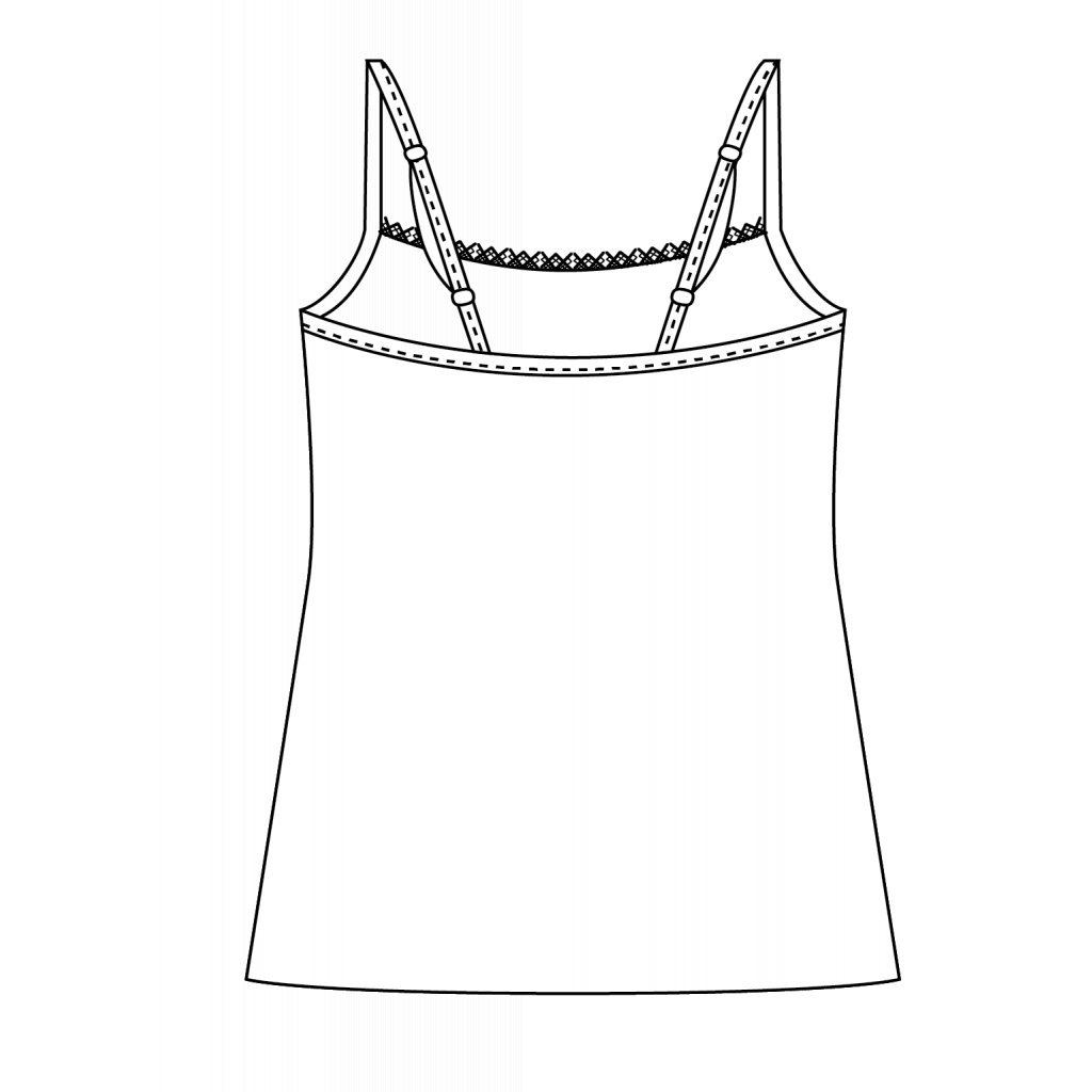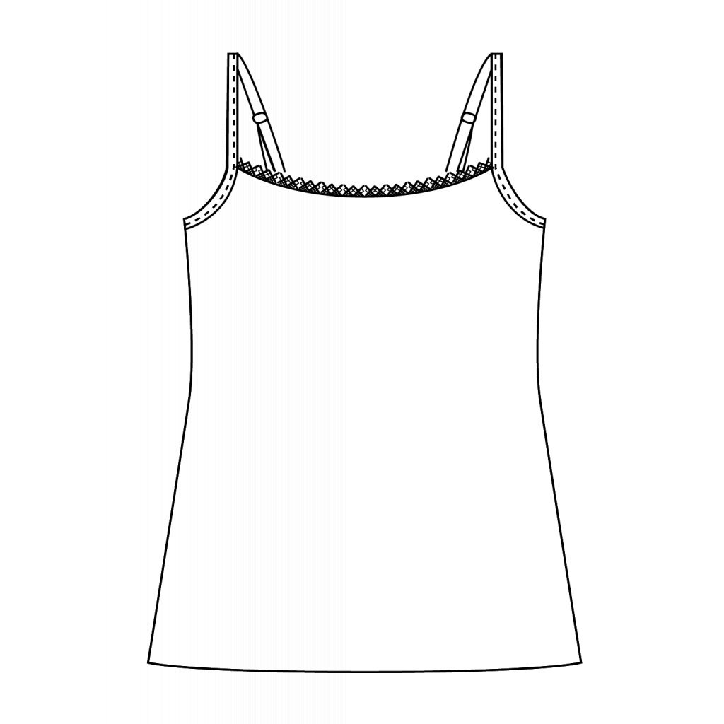 Lehká hladká košilka z prodyšné bavlny se dá nosit pod oblečení, na spaní, nebo jako tílko. Má pohodlnou délku k bokům, úzká špagetová ramínka s nastavitelnou délkou a tenkou krajku ve výstřihu.