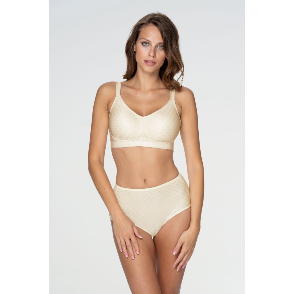 Bezešvá slabě vyztužená podprsenka bez kostic sportovnějšího, ale zároveň velmi elegantního střihu ComfyBra poprvé v kolekci Gingerbread. Zkonstruována tak, aby pohodlně a bezpečně udržela i poprsí větší velikostí.