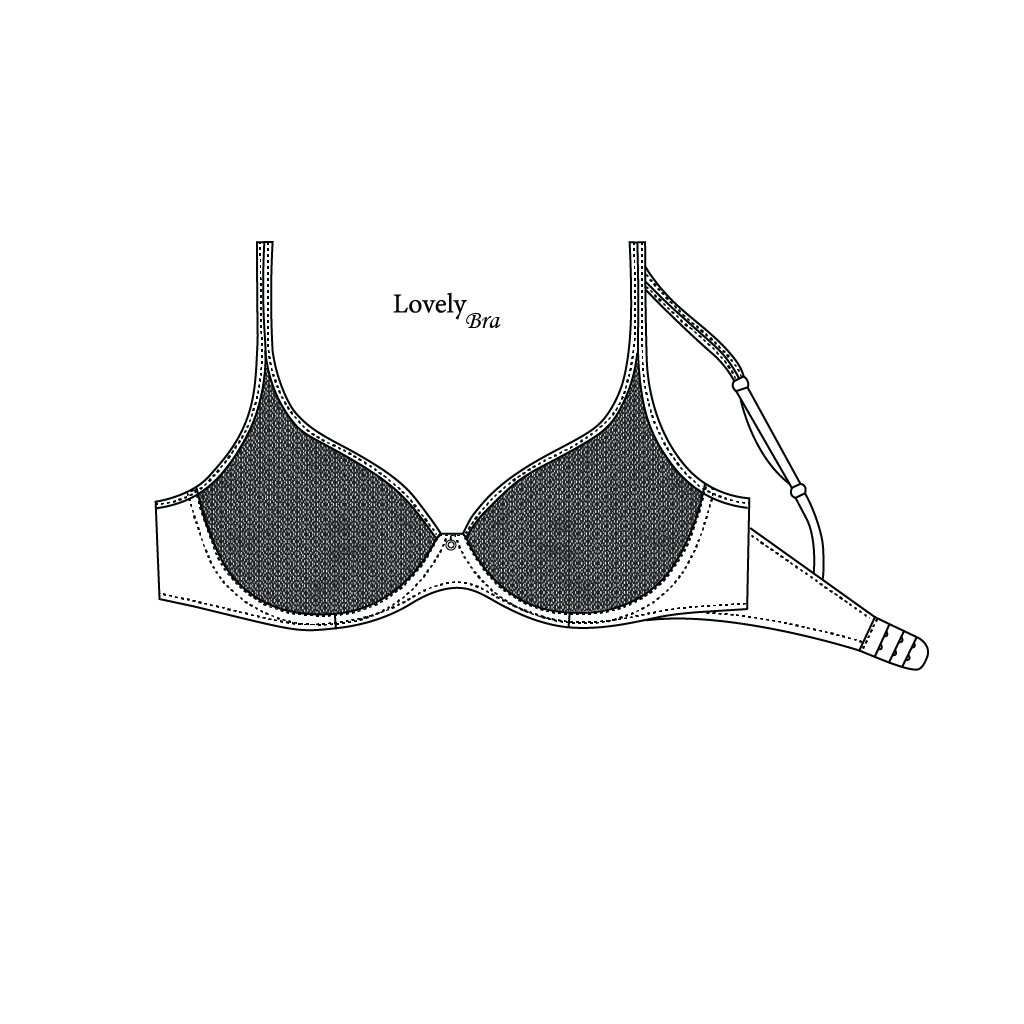 V kolekci Simplicity šijeme podprsenku ve střihu LovelyBra. Slabě vyztužená podprsenka má nízký střed vhodný pro hluboký dekolt i do větších velikostí. Bezešvé tělové košíčky jsou potaženy jemným černým tylem a vytváří elegantní nahý efekt.