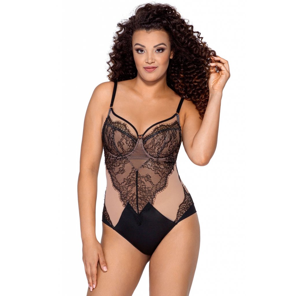 Elegantní body:- z efektní ažurové krajky a elastické siťoviny- podšité béžovým tylem- měkké košíčky s kosticemi- nastavitelná a neodepínatelná ramínka- zapínání na patentkySložení: 88 % polyamid, 8 % bavlna, 4 % elastanDoplňkové parametry