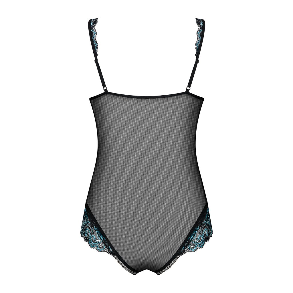 průsvitná síťovina v kombinaci s krajkou, zdobenou lesklou, tyrkysovou nití