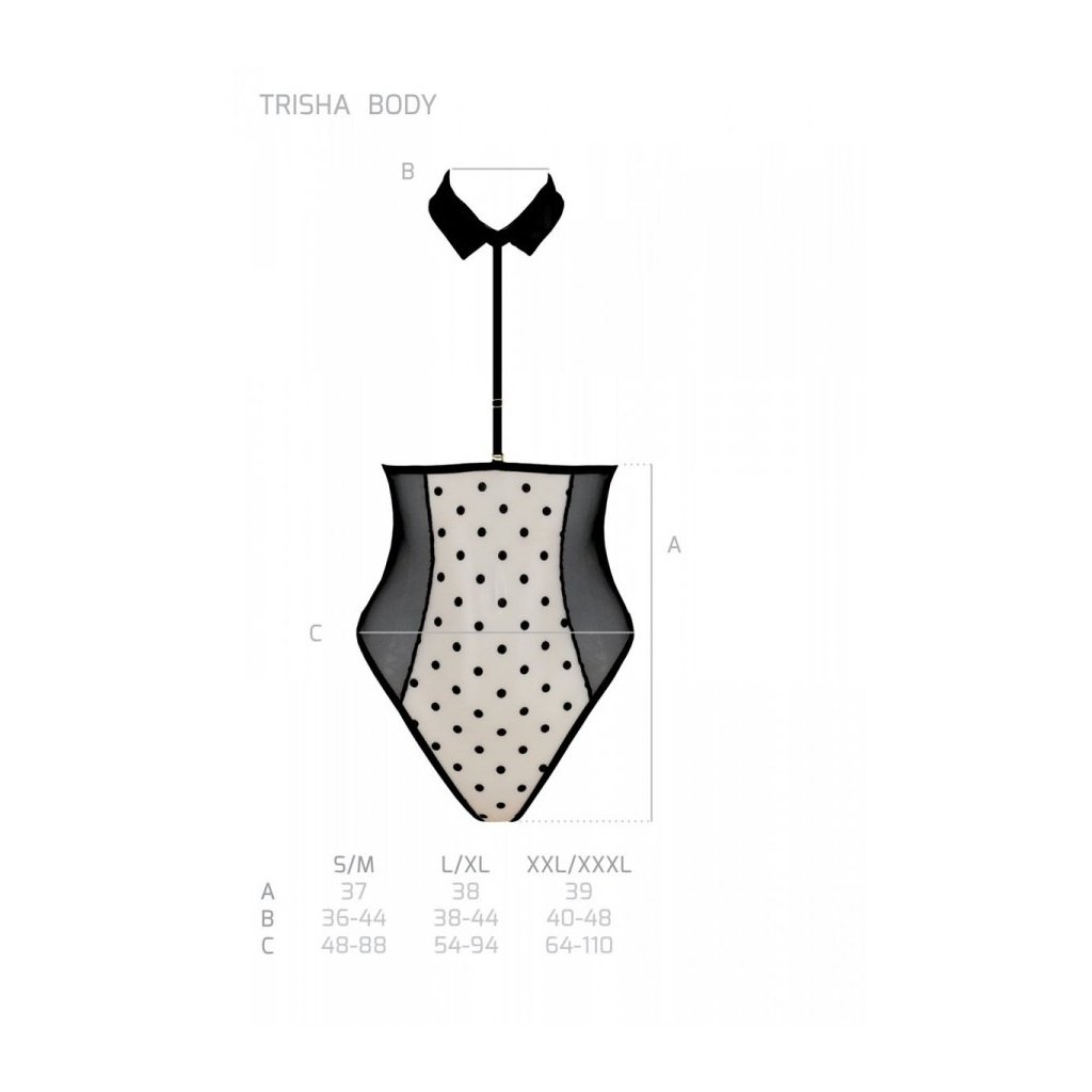 Toto sexy body Trisha je od značky Passion, která je určena ženám, jež si uvědomují své tělo a ženskost. Perfektně se hodí pro každou příležitost, kdy se chcete předvést. Zde představený model plně odhaluje ňadra. Díky korzetovému vázání na zádech se pohodlně nosí. Sexy odepínatelný choker v podobě límečku dodává celku charakter.