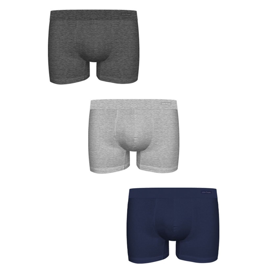 Pánské boxerky značky John Frank z materiálu s vysokým obsahem bavlny. Boxerky jsou velmi příjemné, pohodlné při nošení a vzdušné. V pase je pohodlná širší guma s logem výrobce na levém boku. Balení obsahuje troje boxerky v různých barvách.