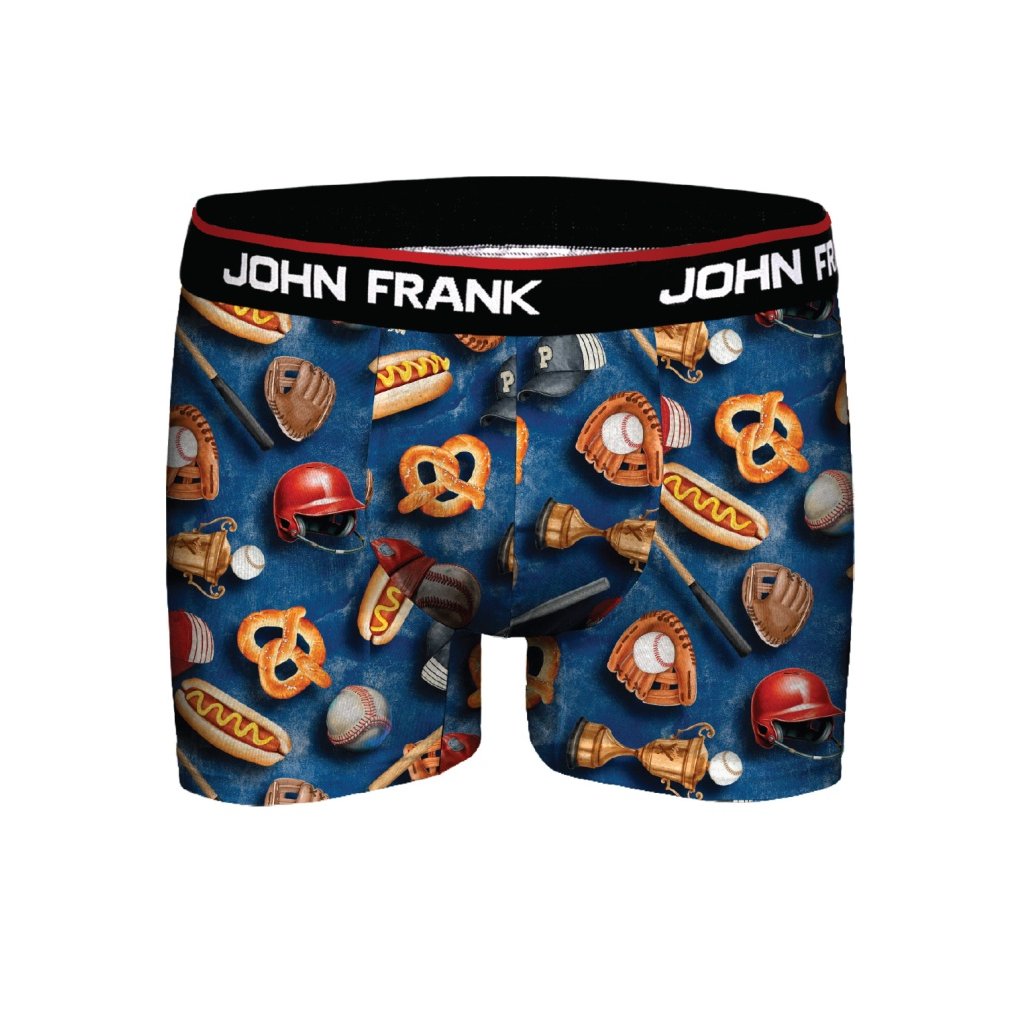 Pánské boxerky značky John Frank s vysokým podílem bavlny. Boxerky jsou velmi příjemné na dotek a pohodlné při nošení. Jsou v modré barvě, s motivem baseballu. V pase mají pohodlnou širší pružnou gumu s logem značky po obvodu. Boxerky jsou v dárkové krabičče.