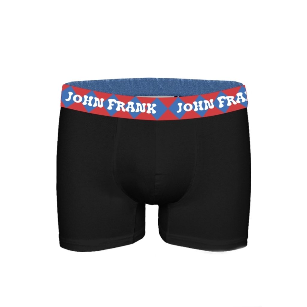 Pánské boxerky značky John Frank. Díky vysokému podílu modalu jsou boxerky velmi příjemné na dotek a pohodlné při nošení. Boxerky jsou černé, v pase mají širší barevnou pružnou gumu.