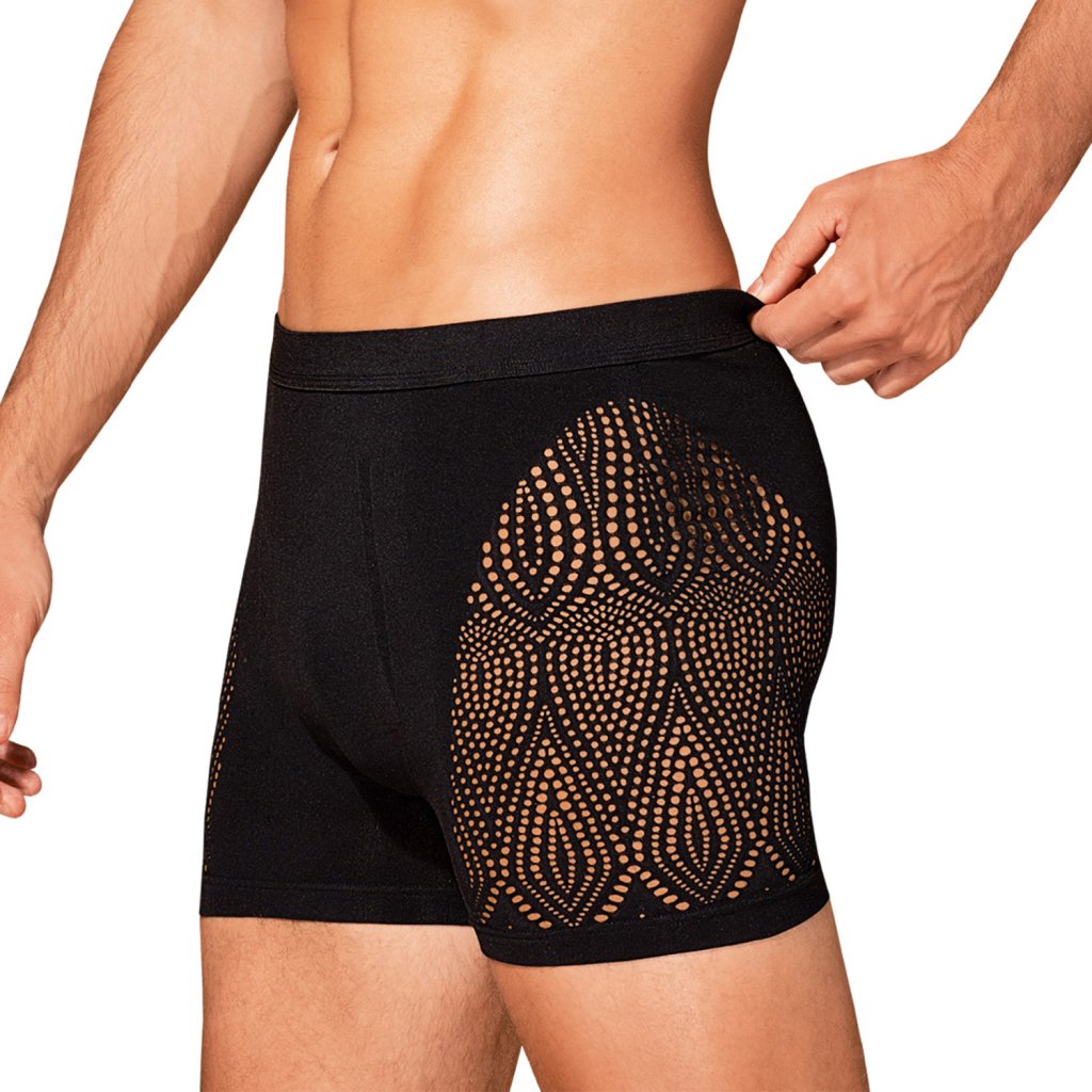 Pánské boxerky M103 klasický střih s nádechem pikantností - výjimečně svůdný vzhled zajímavé výřezy na bocích elastický a velmi příjemný materiál (90% nylon, 10% elastan) Vlastnosti: elastická tkanina univerzální velikost - ideálně se hodí pro lidi, kteří nosí velikost S, M a LDoplňkové parametry