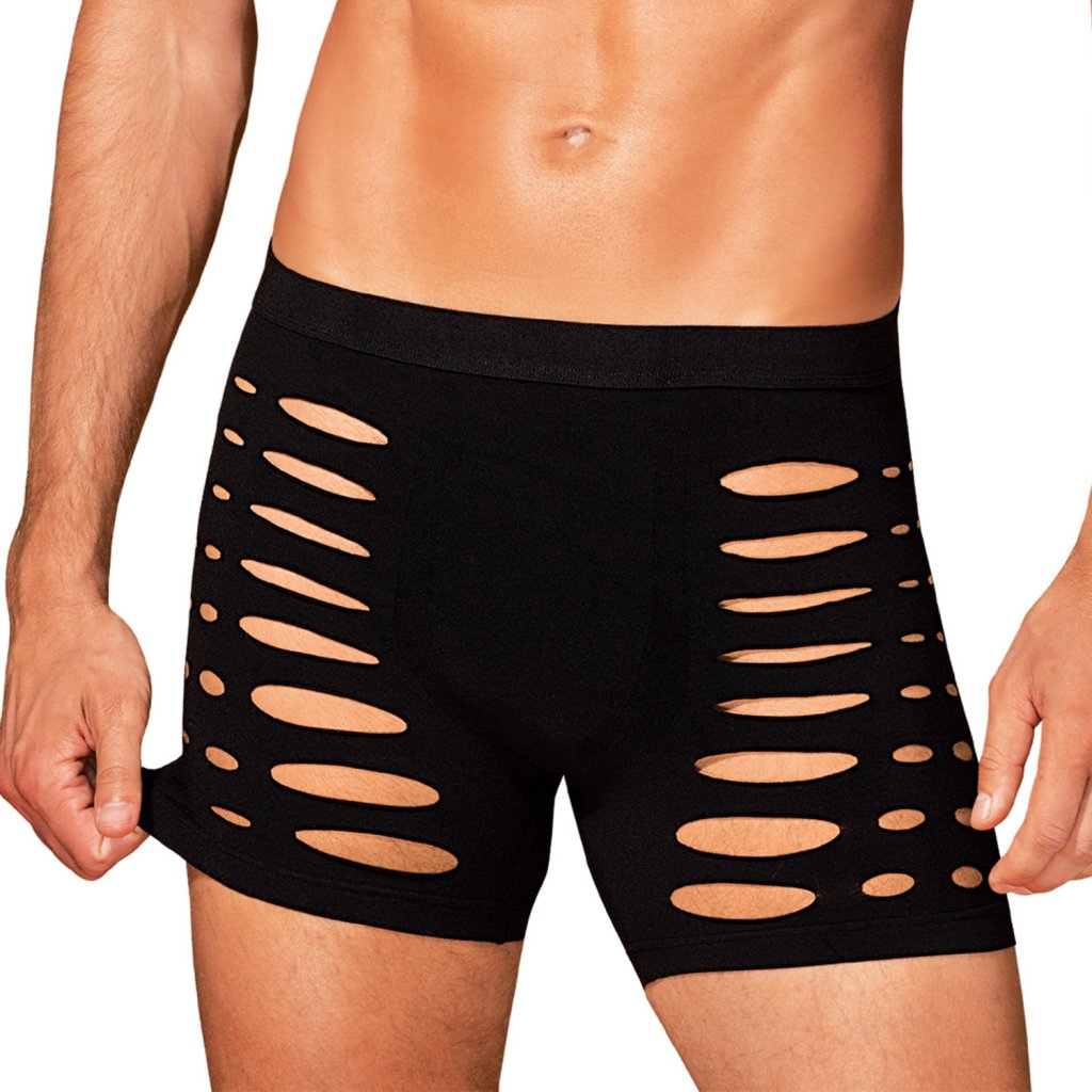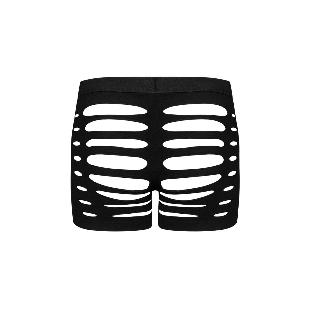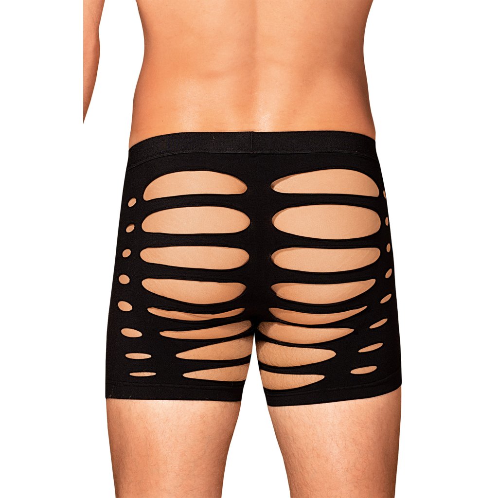 Pikantní boxerky M104 v černé barvě přiléhavý střih pro sexy zvýraznění vašich tvarů pružná a na dotek příjemná tkanina (90% nylon, 10% elastan) Vlastnosti: elastická tkanina univerzální velikost - ideálně se hodí pro lidi, kteří nosí velikost S, M a LDoplňkové parametry