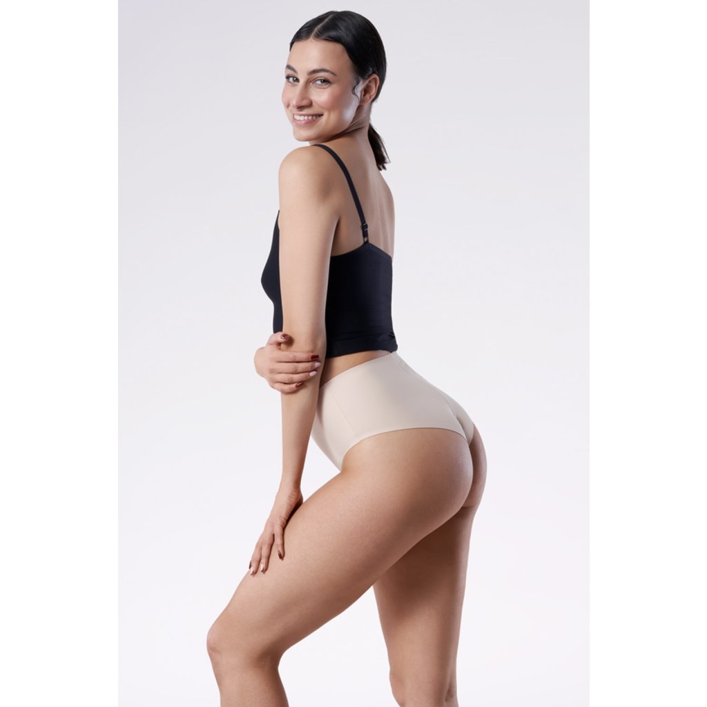 Bezešvé brazilky s vysokým pasem jsou jedinečným střihem pro milovnice nízkého spodního prádla. Tento model krásně zvýrazní vaše hýždě a vy se budete cítit sexy a přitažlivě. Vysoký pas zabrání vzniku nevzhledného faldíku na břiše, který je viditelný u kalhotek s nižším pasem. Jsou perfektní k vypasovaným šatům nebo kalhotám a zůstávají pod oblečením neviditelné. Díky klasickému střihu a vysokému pasu skvěle padnou na tělo. Hluboce vykrojená záda zdůrazní hýždě a opticky prodlouží nohy. Kalhotky Julimex Brasil Maxi jsou vytvořeny bezešvou technologií Julimex Invisible Line®. Jsou vyrobeny z měkké a na dotek jemné pleteniny a navíc mají hygienickou bavlněnou vložku pro zajištění maximálního pohodlí.Složení: 89% polyamid, 10% elastan, 1% bavlna.