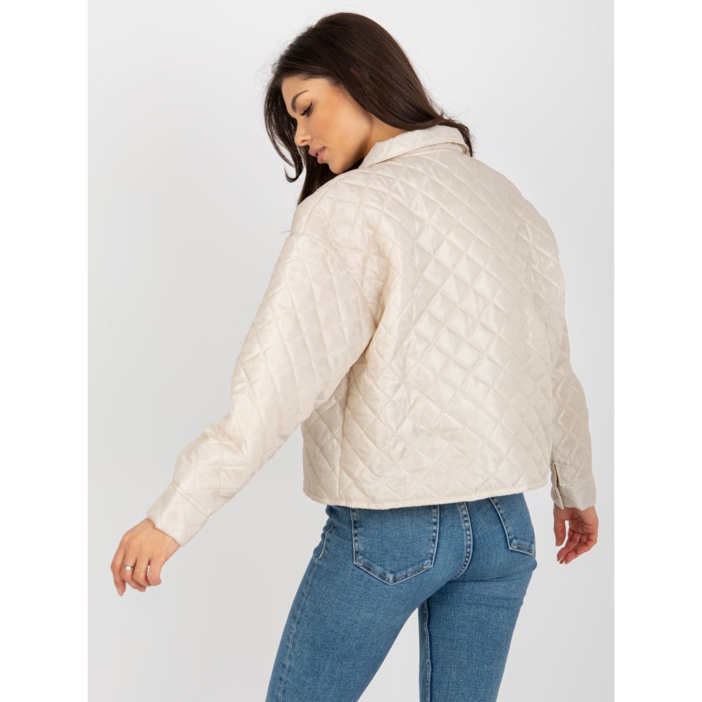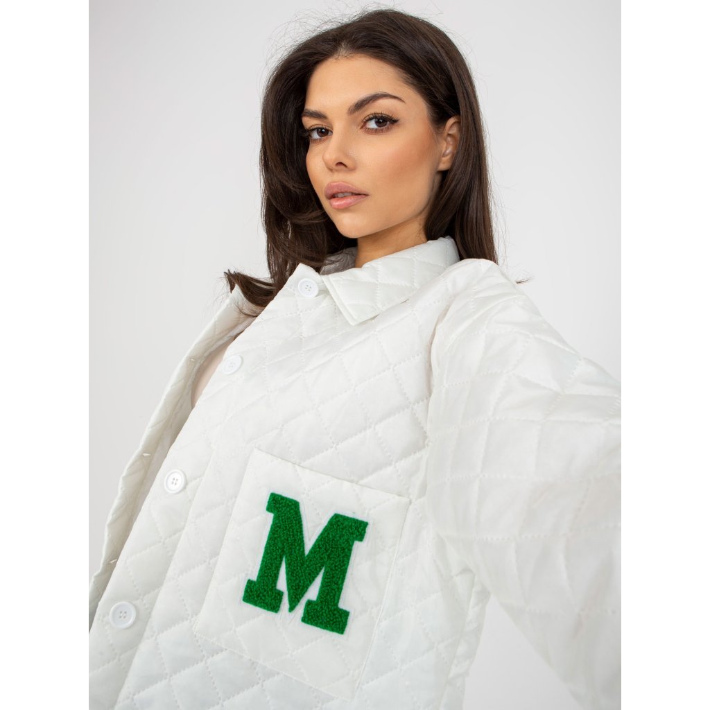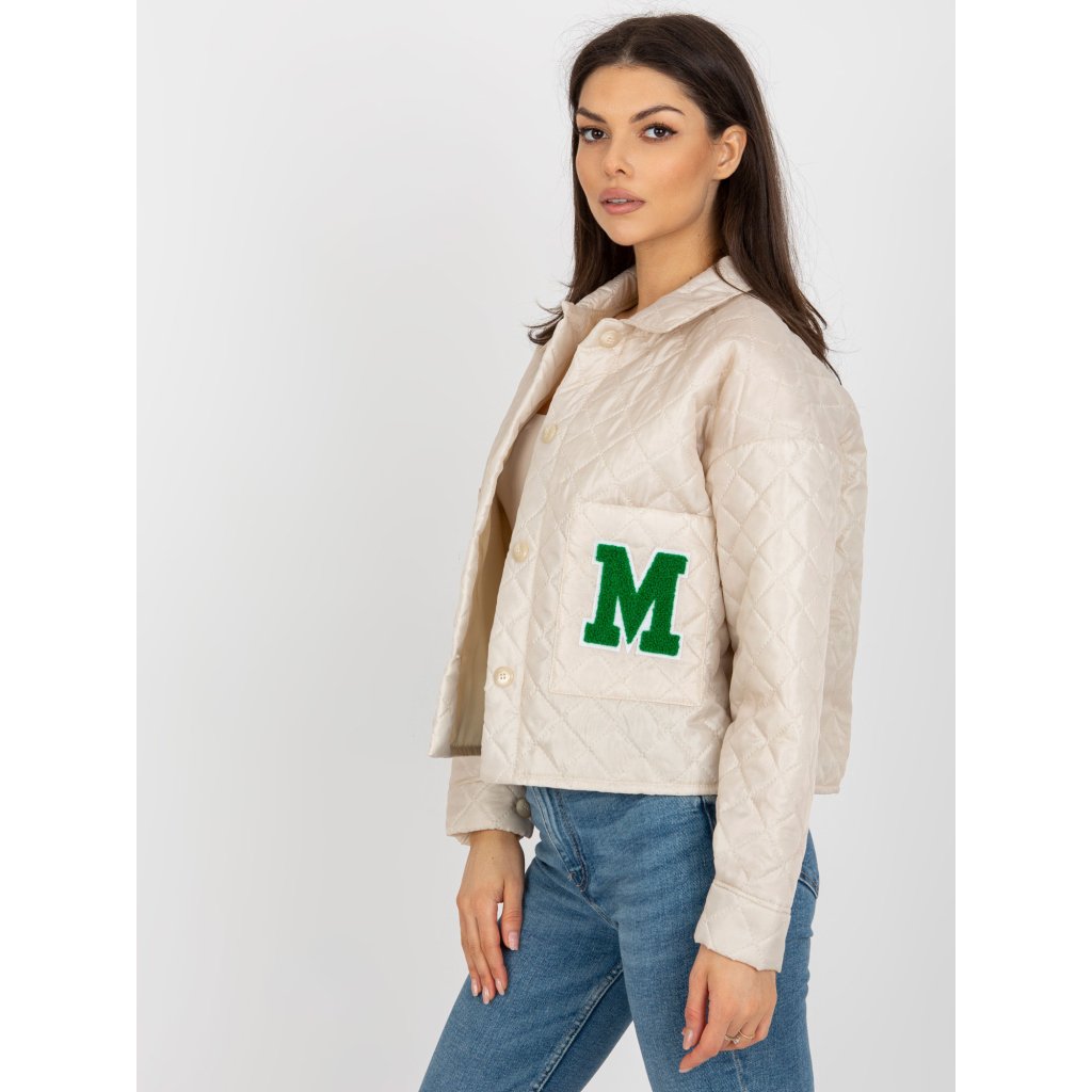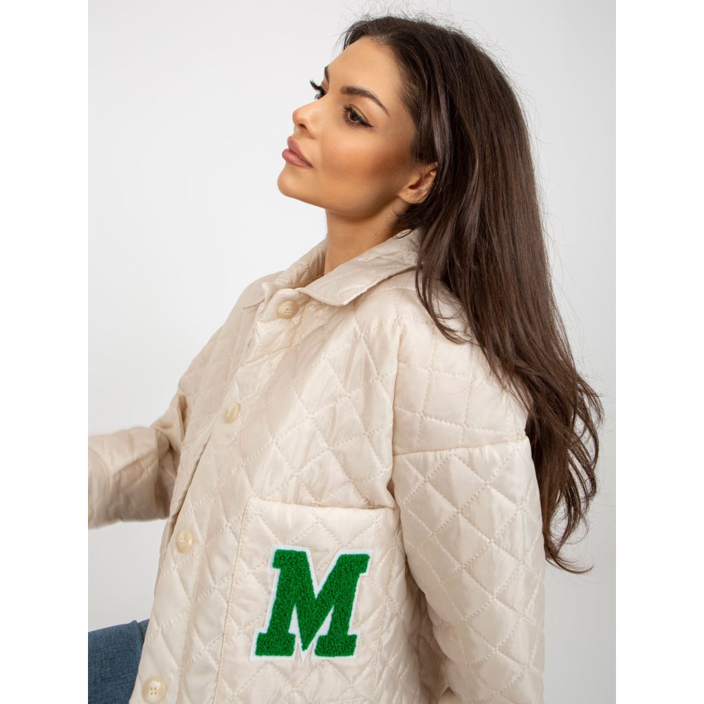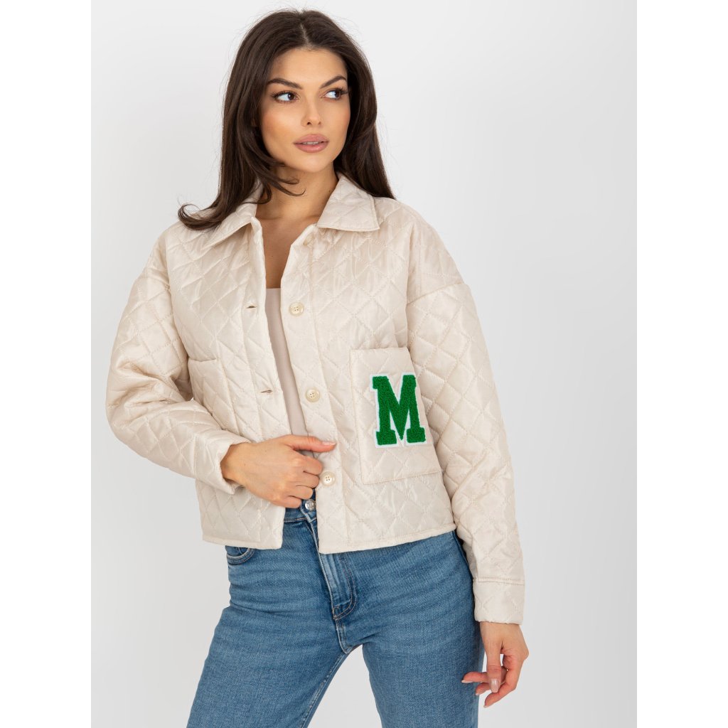 Prošívaná bunda v ecru barvě pro volný čas s nášivkou.