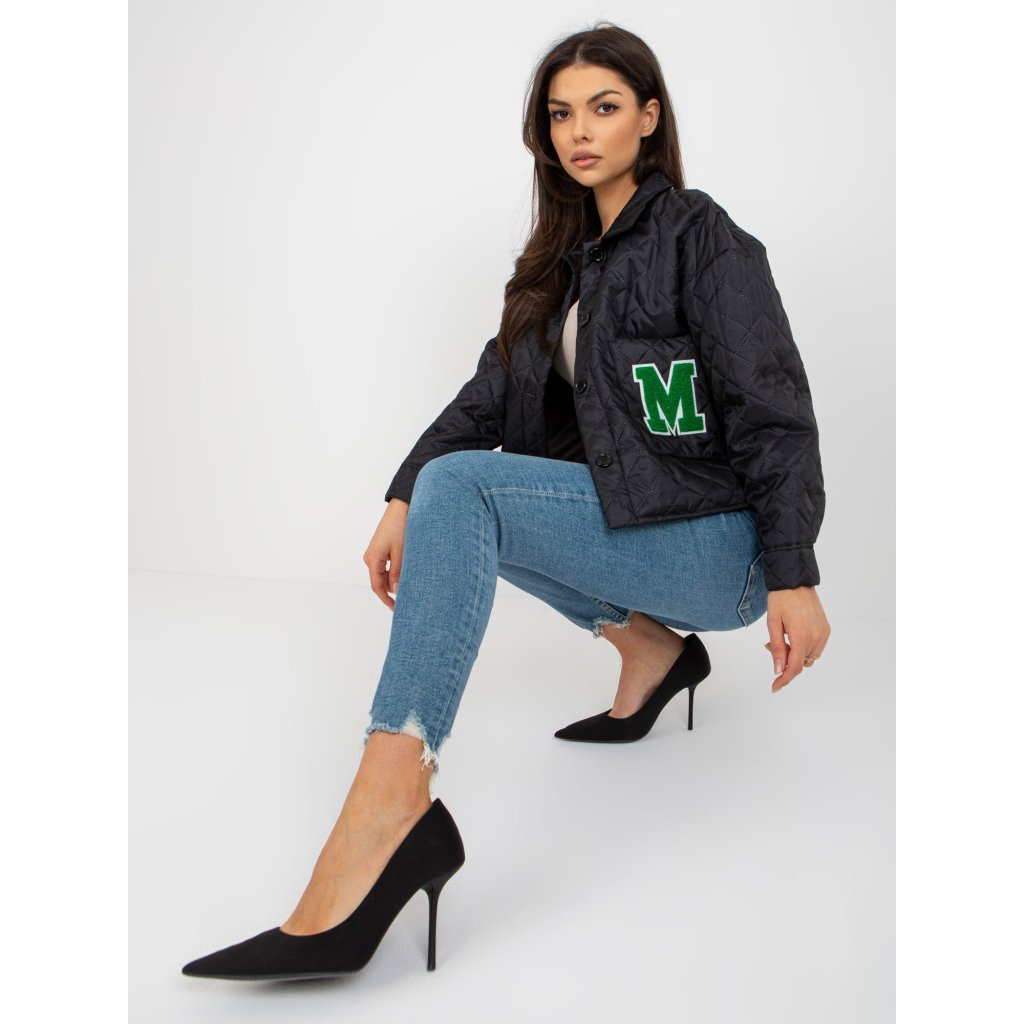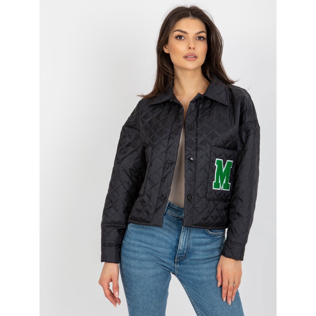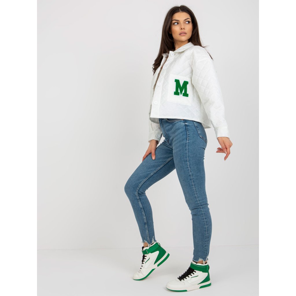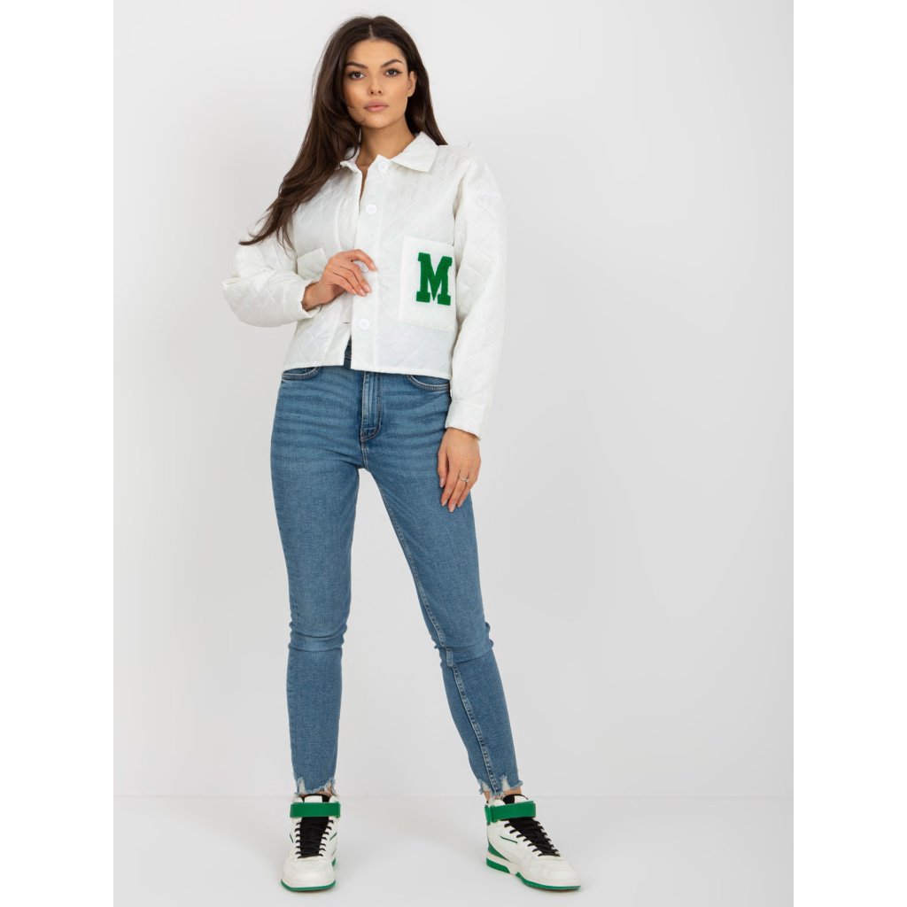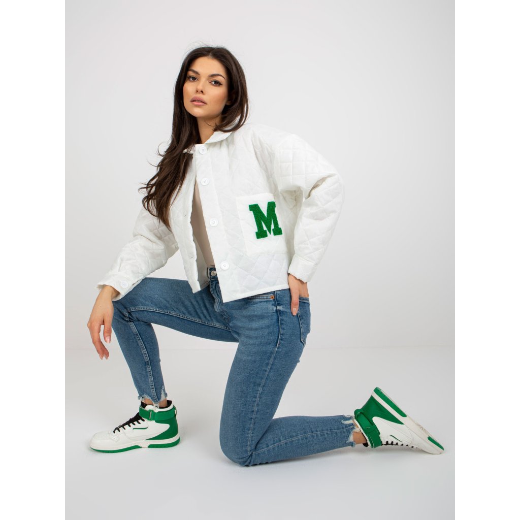 Prošívaná bunda v ecru barvě pro volný čas s nášivkou.