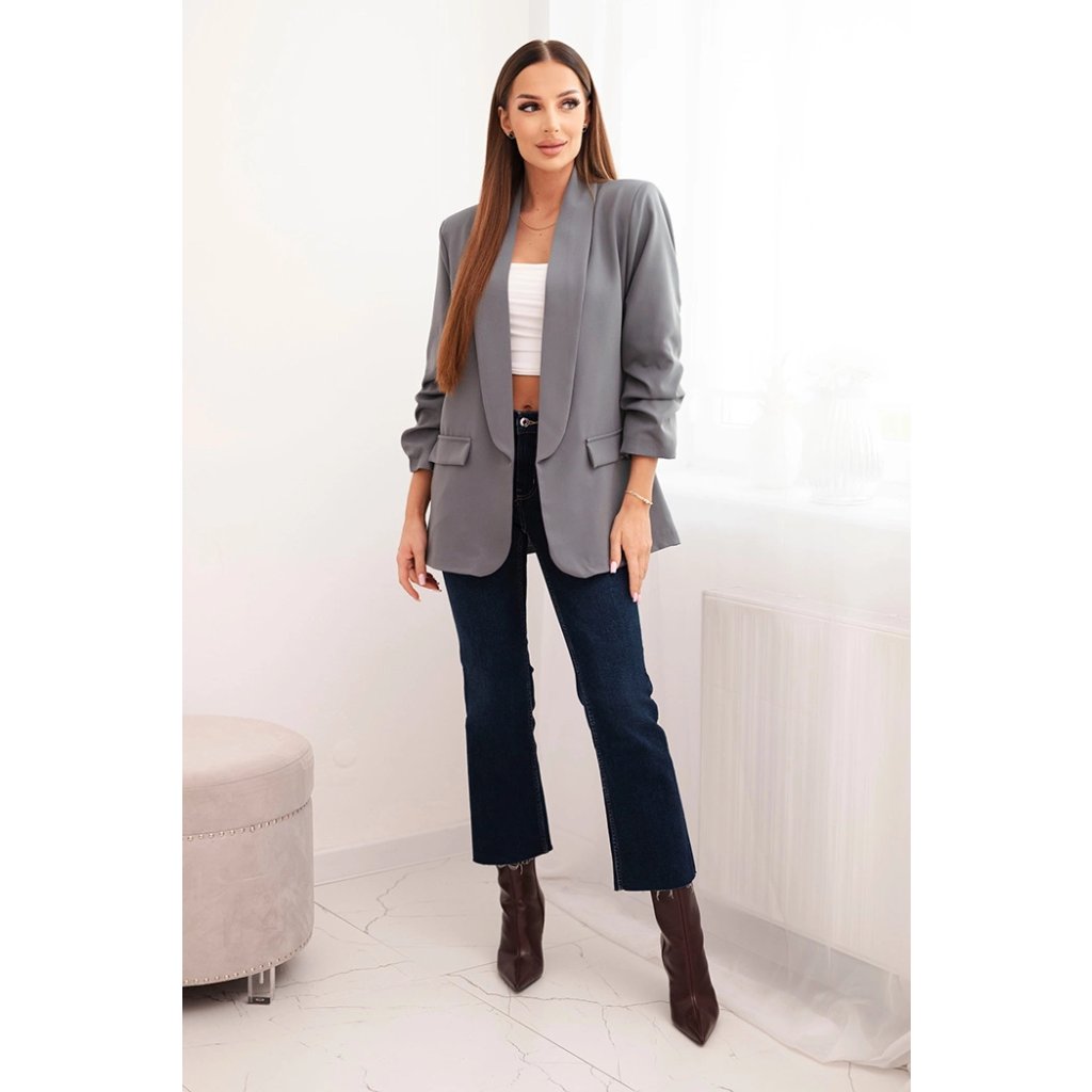 Představujeme vám elegantní sako. Sako bez zapínání s klopami vpředu. Tento model bude skvělou volbou pro mnoho typů postav, dodávající každému outfitu nenucenou eleganci. Je to základ každého šatníku a prvek stylizace pro speciální příležitosti - na každé roční období a na každou příležitost. Sako je vyrobeno z vysoce kvalitního materiálu. Sako má podšívku. Velikost je univerzální a bude vhodná pro dámy ve velikosti S, M a L.