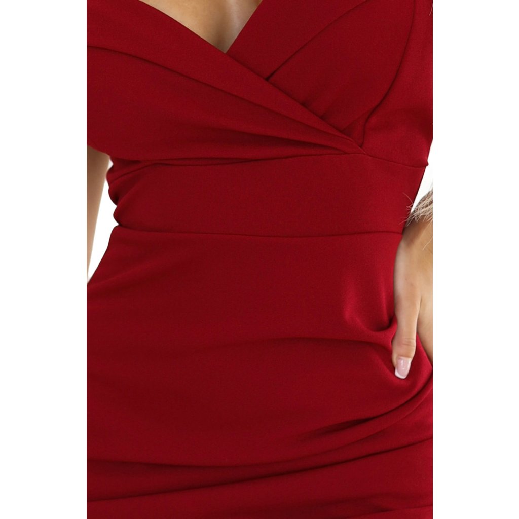 Smyslné vínové midi šaty od Numoco Basic. Má zavinovací výstřih, tenká ramínka, asymetrický rozparek a elegantní řasení. Ideální pro večerní výlety a zvláštní příležitosti. evropská produkce.