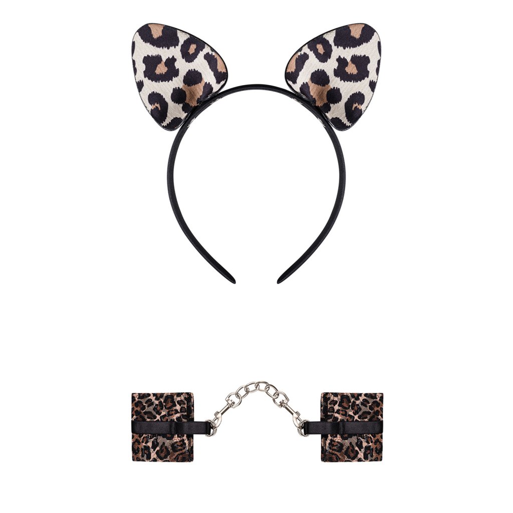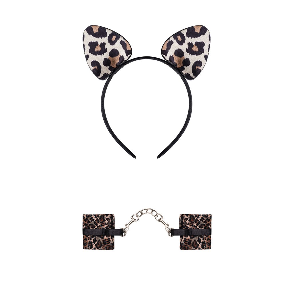 Páni, to je ale kočičí oblek! Nyní se můžete těšit na svůdný leopardí potisk, který vás tento večer ještě více zahřeje. Buďte mimořádně dravá a ciťte se sexy se soupravou Tigerlla, která vám dodá sebevědomí v koketním a zároveň svůdném stylu. Podtrhněte svou postavu a vypadejte smyslně, když si nasadíte tuto čelenku a pouta doplněné o zajímavě posedlé spodní prádlo!