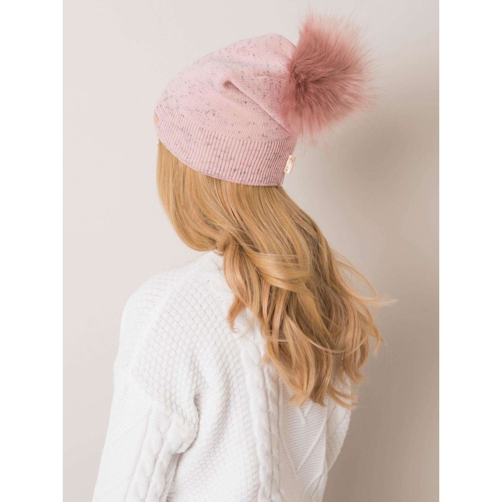 RUE PARIS: Dámská čepice s bambulkou v barvě Dusty Pink.