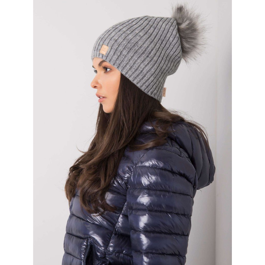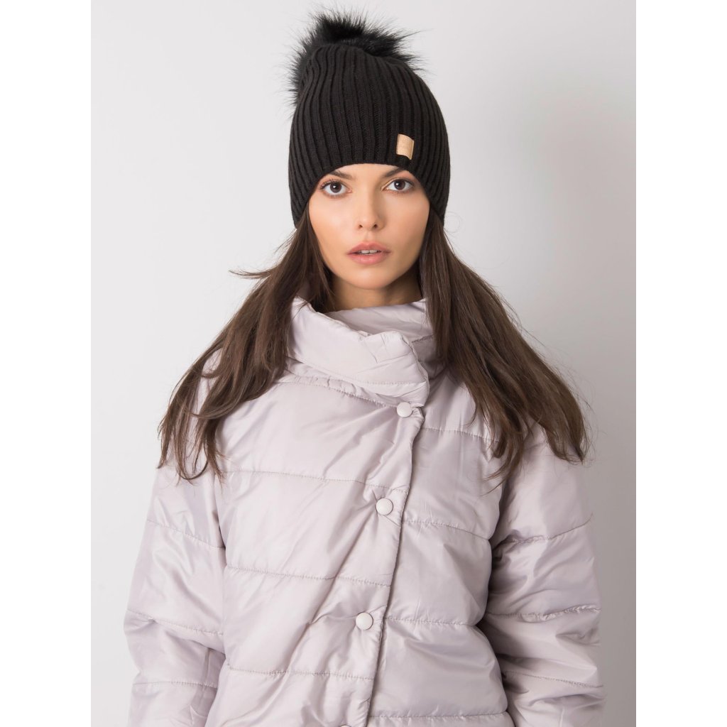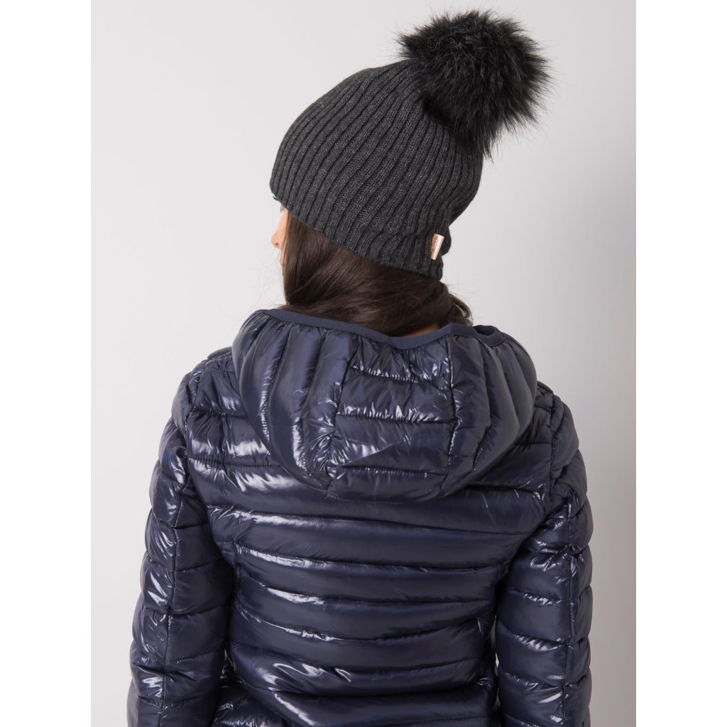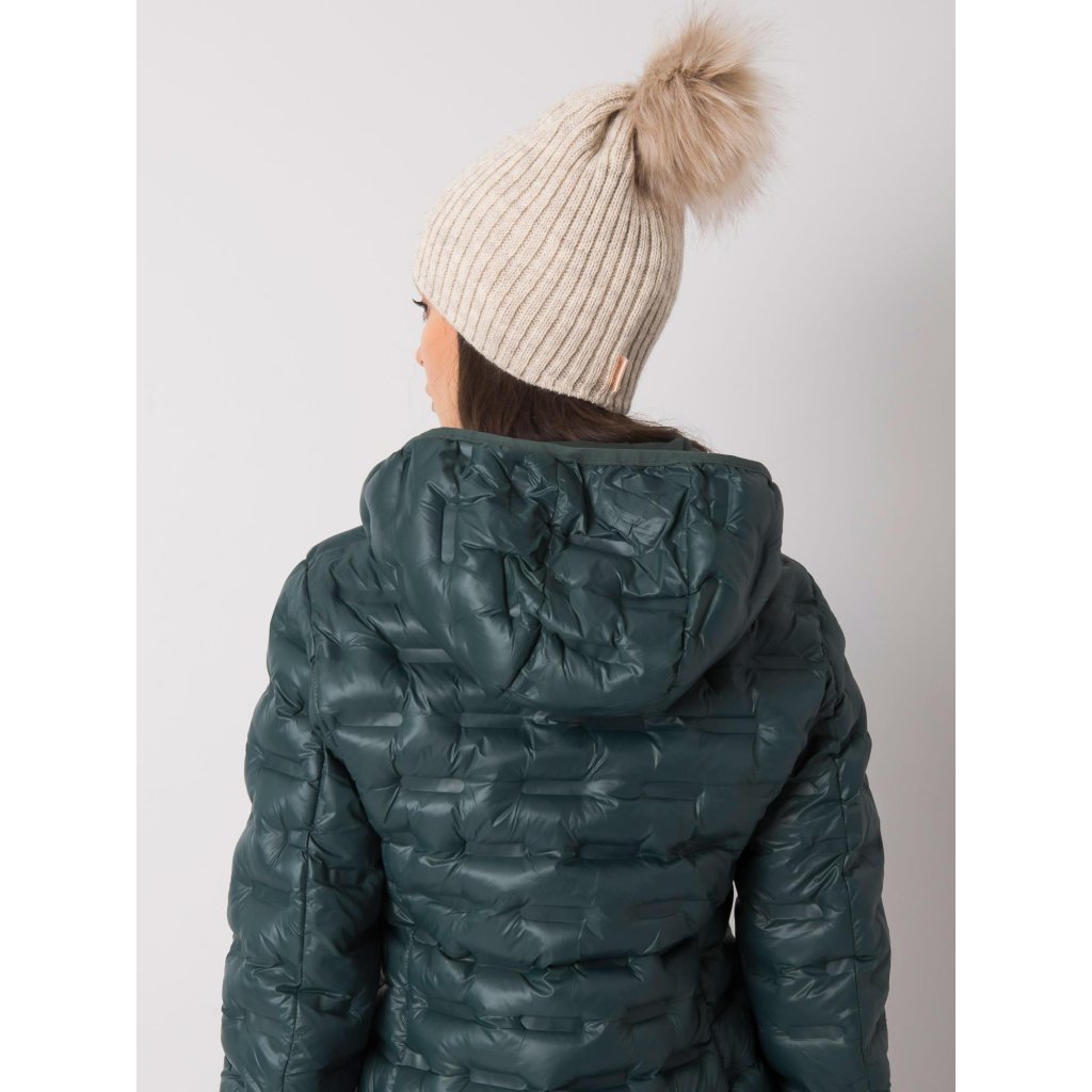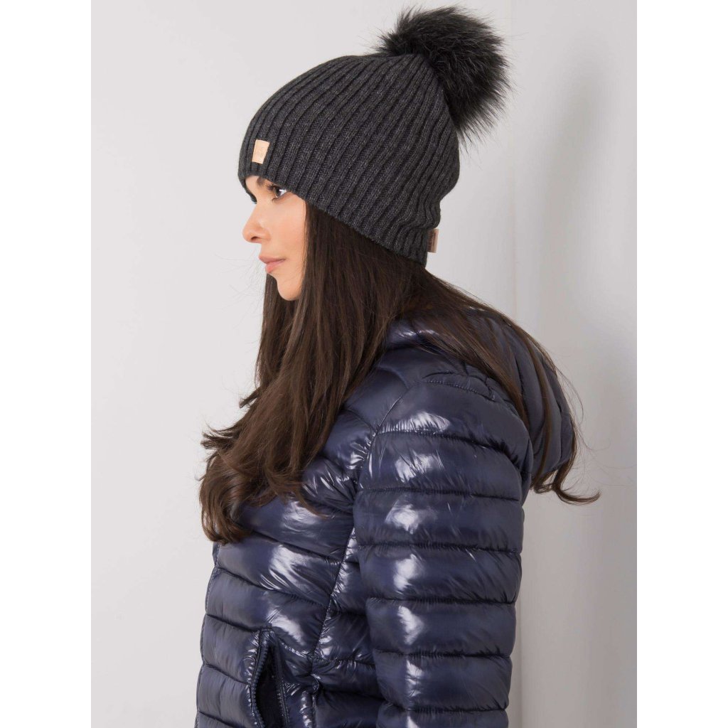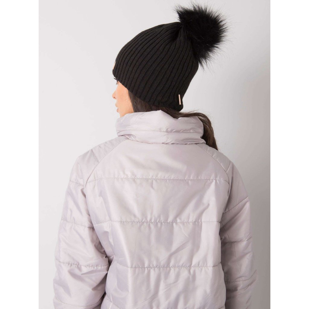 Tmavě béžová čepice s bambulkou.