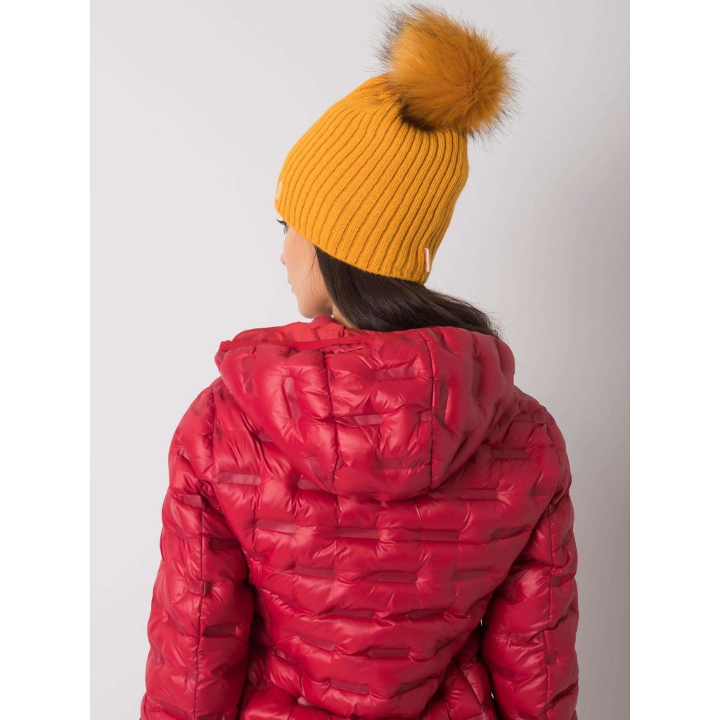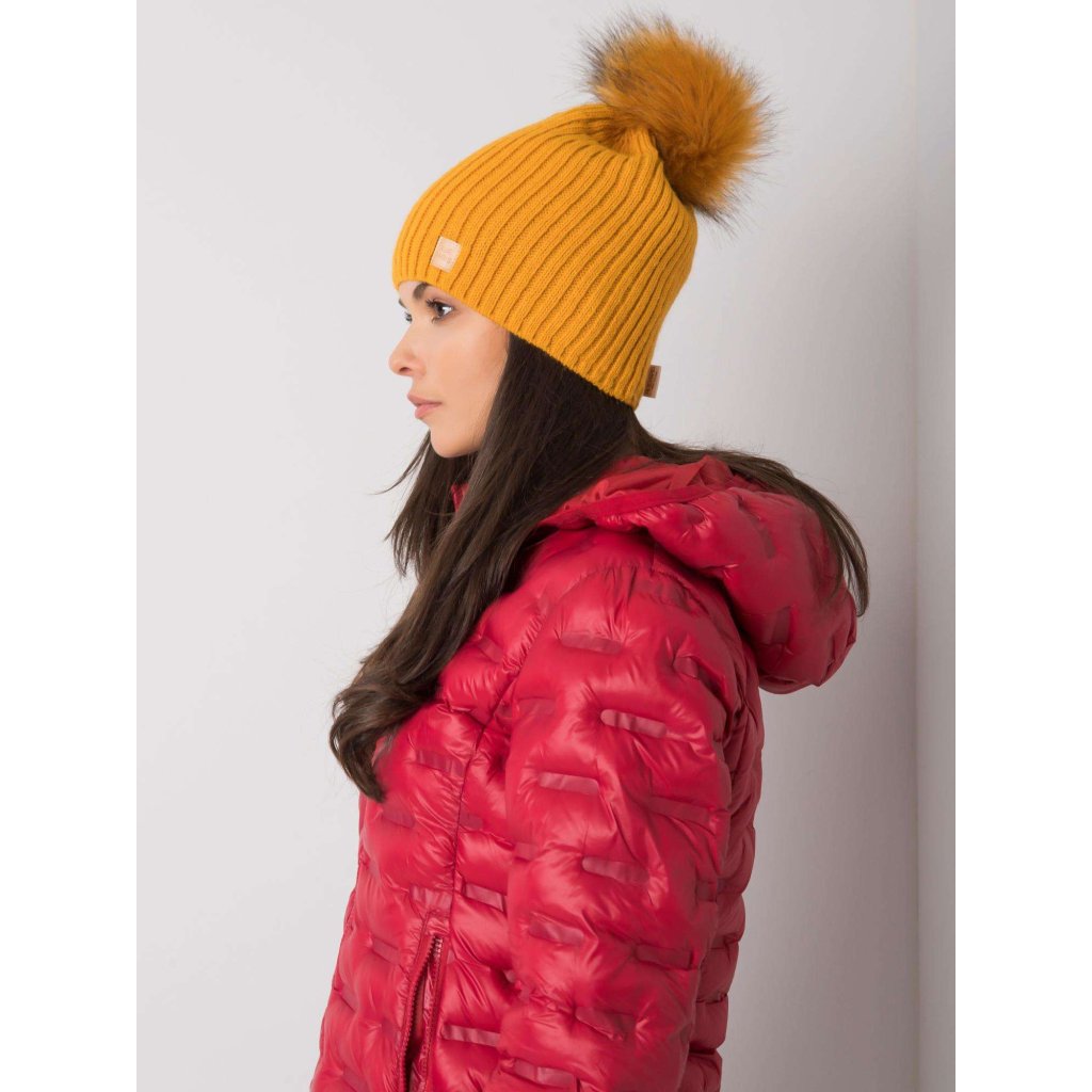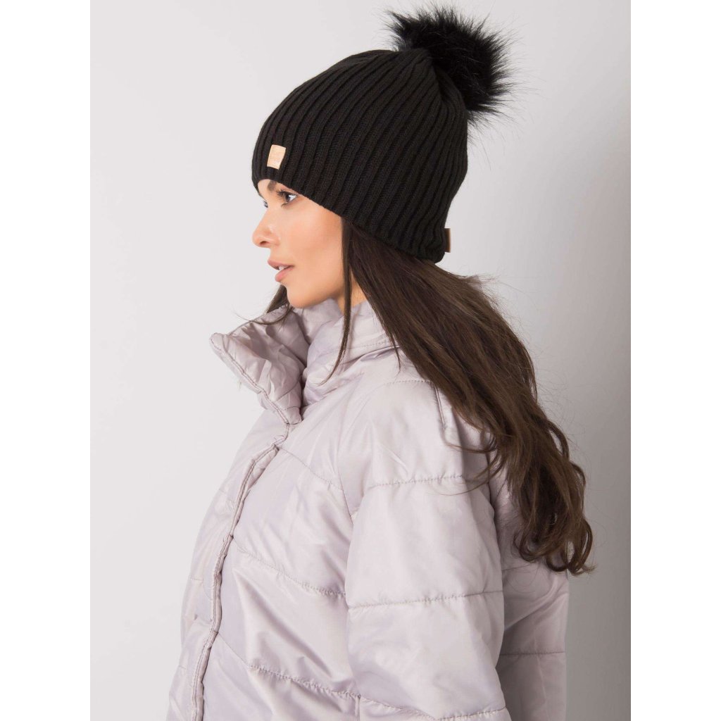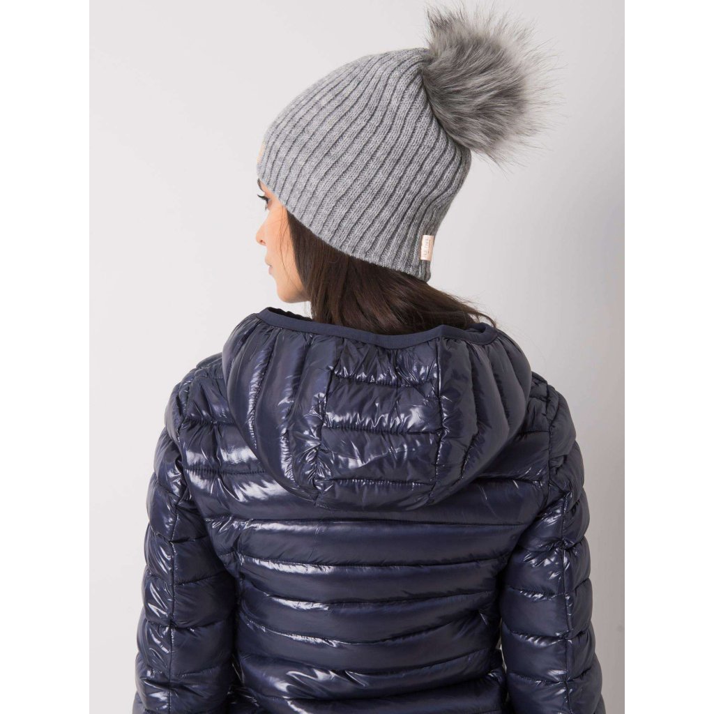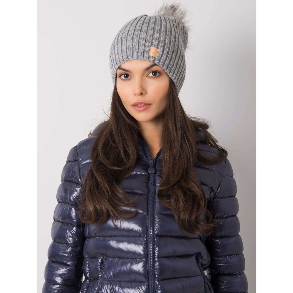 Tmavě béžová čepice s bambulkou.