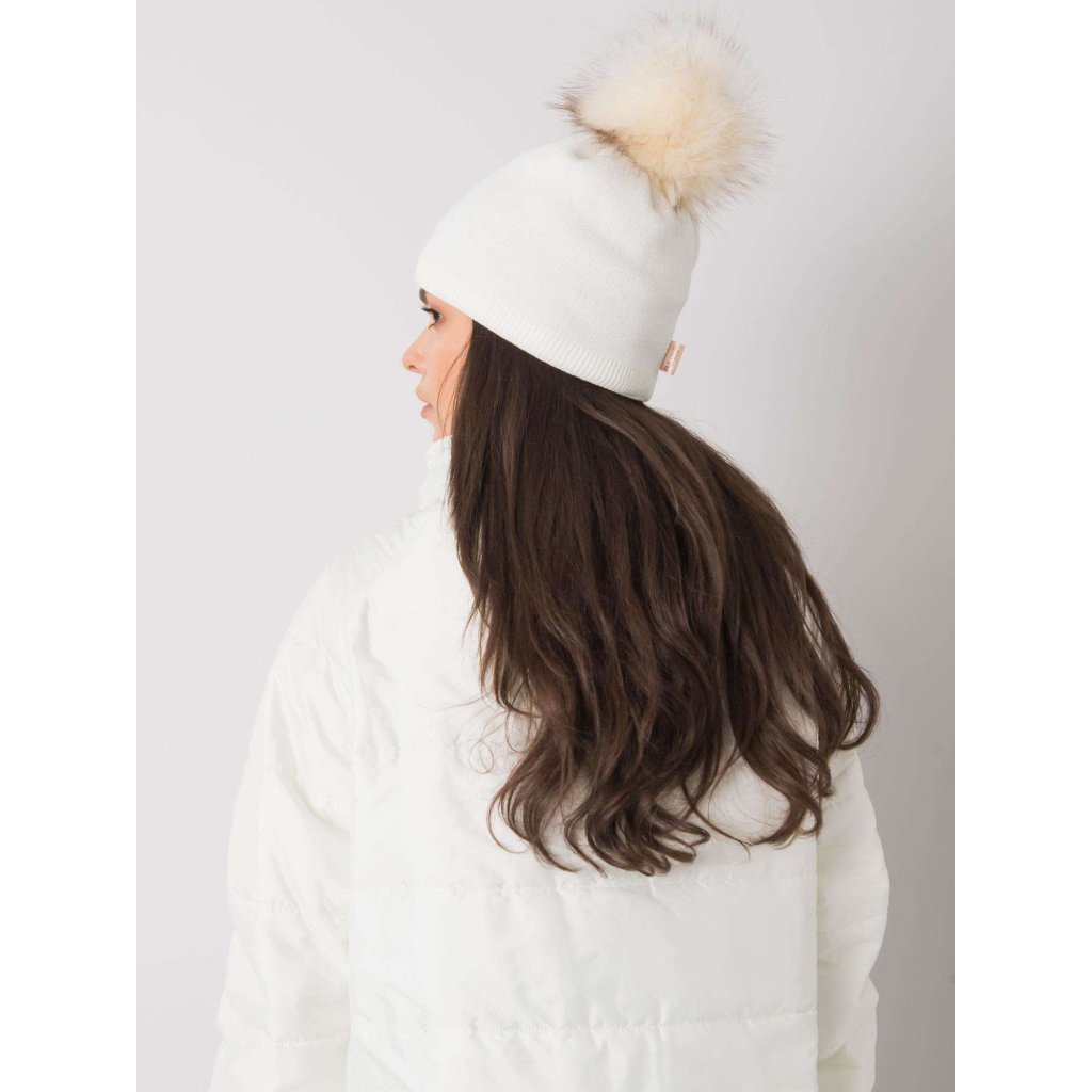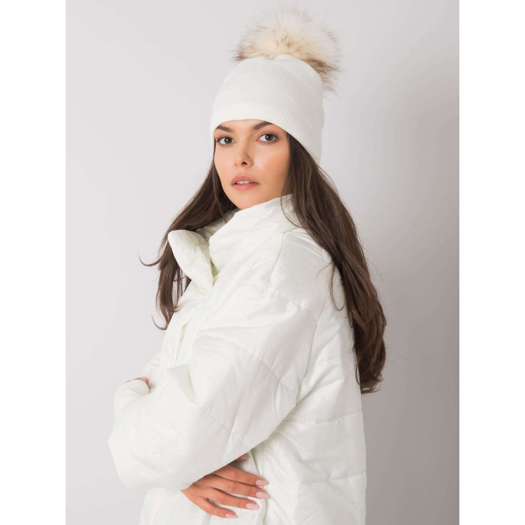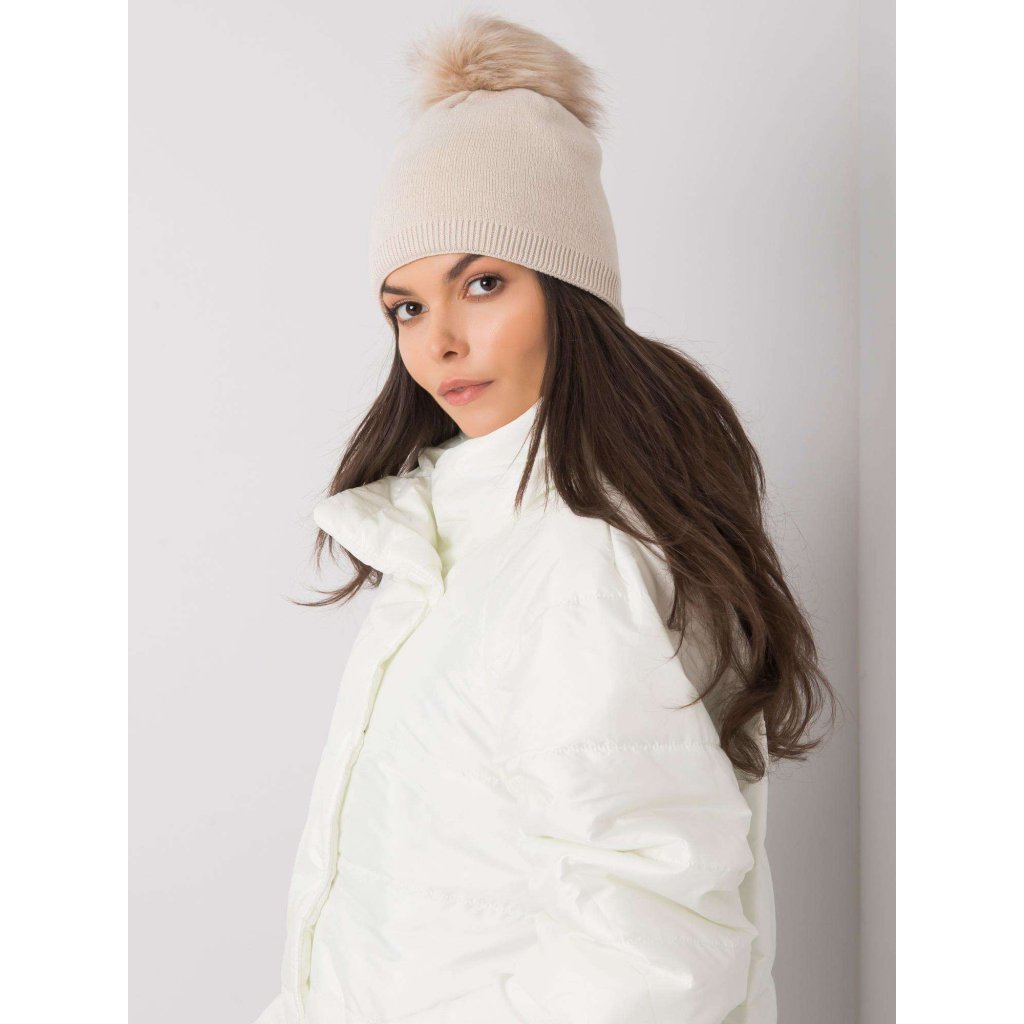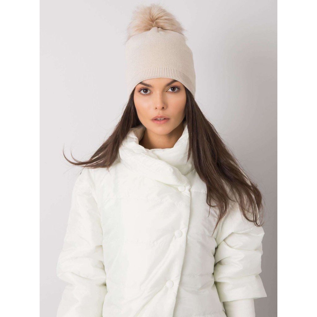 Béžová zimní čepice s bambulkou.
