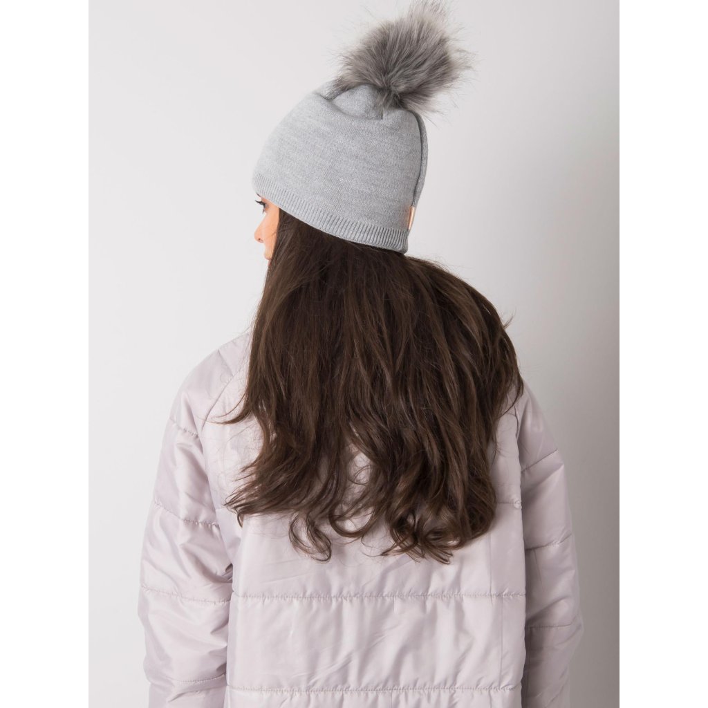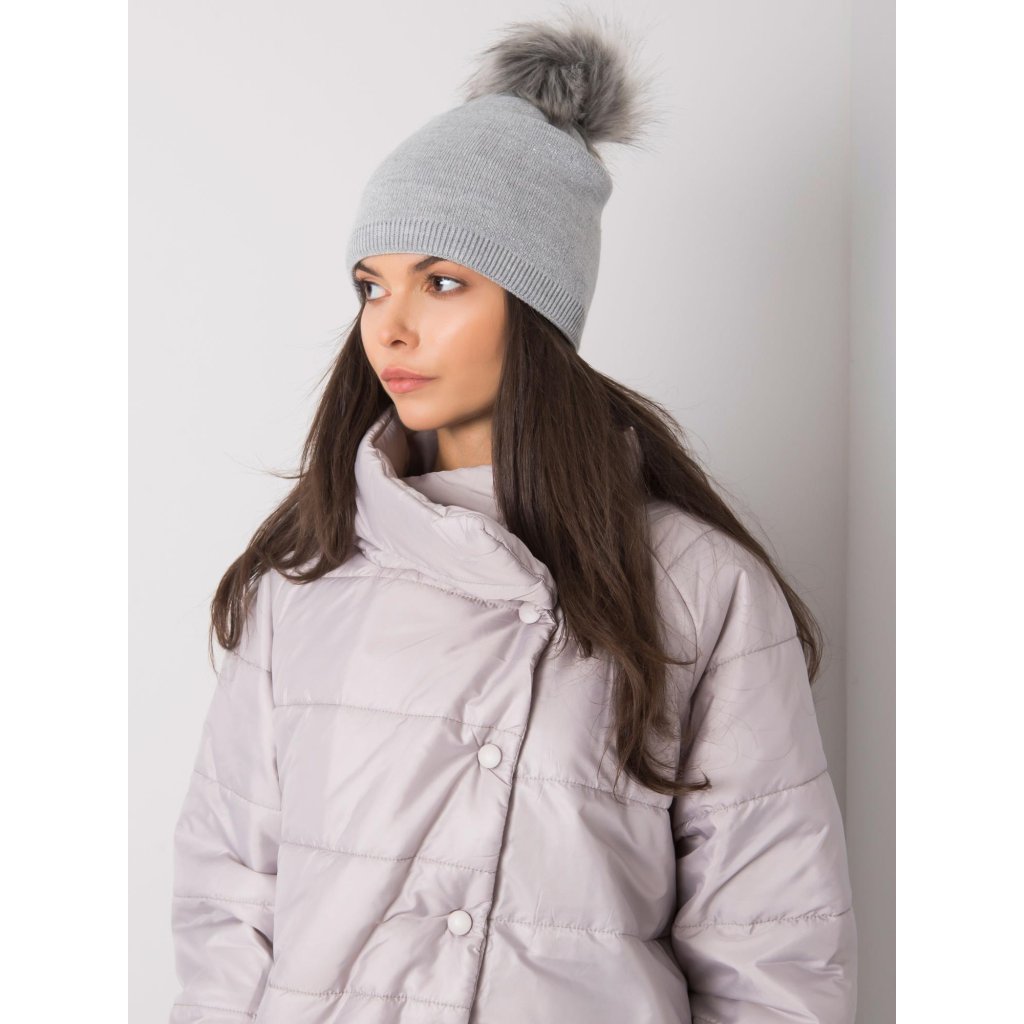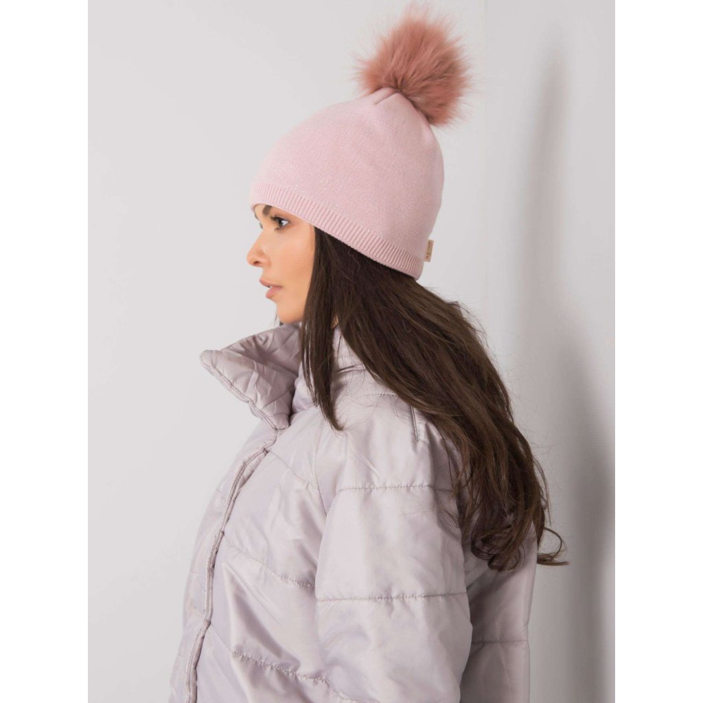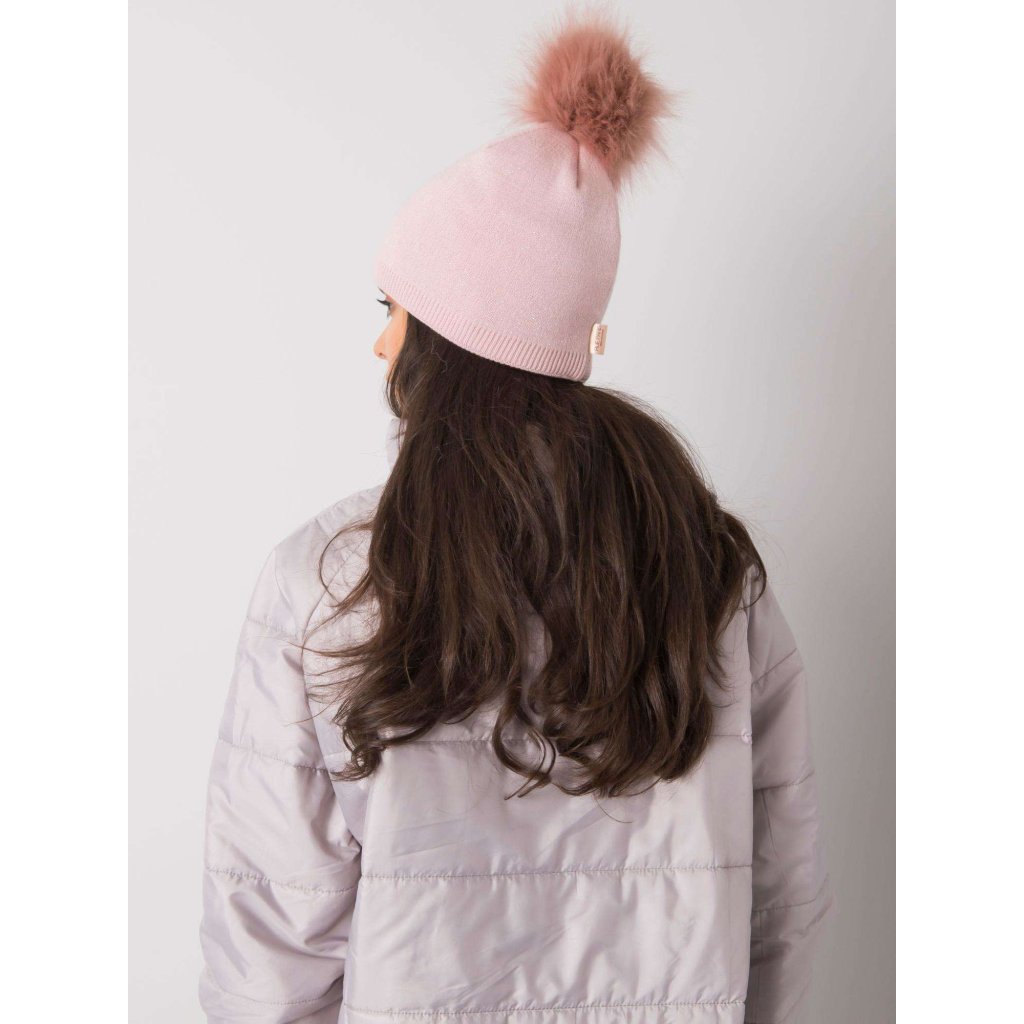 Béžová zimní čepice s bambulkou.