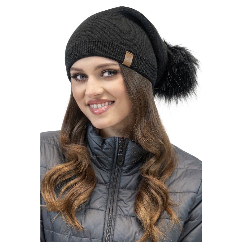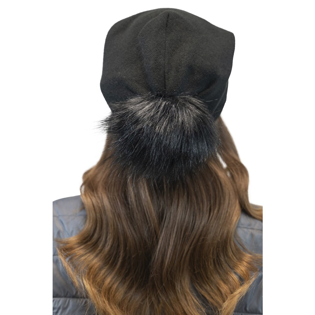 Stylová čepice s bambulí.prodloužená zadní část je všitá do čepice, takže se celá nepohybuje.