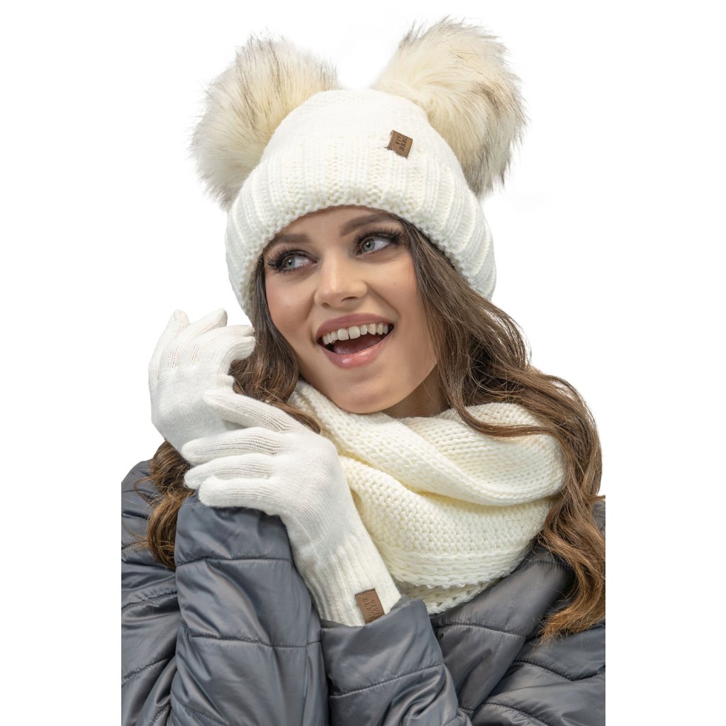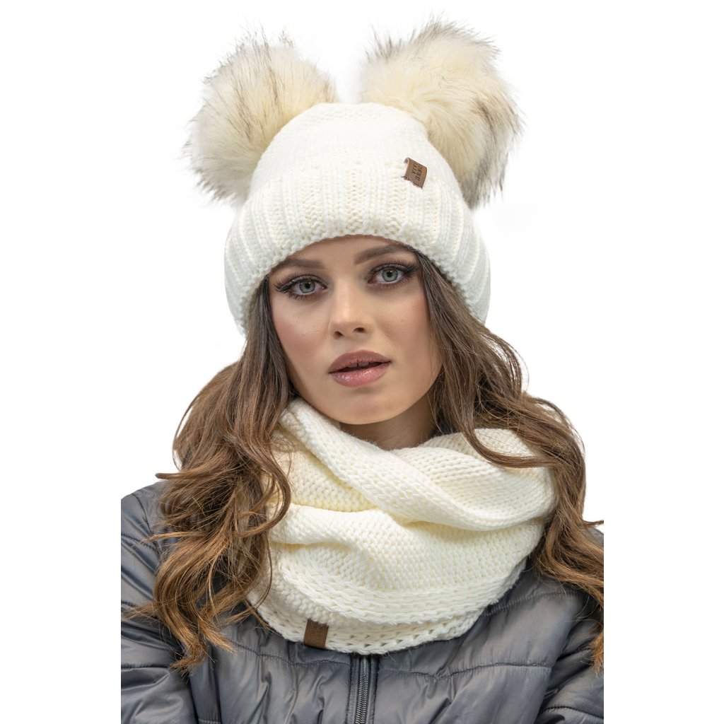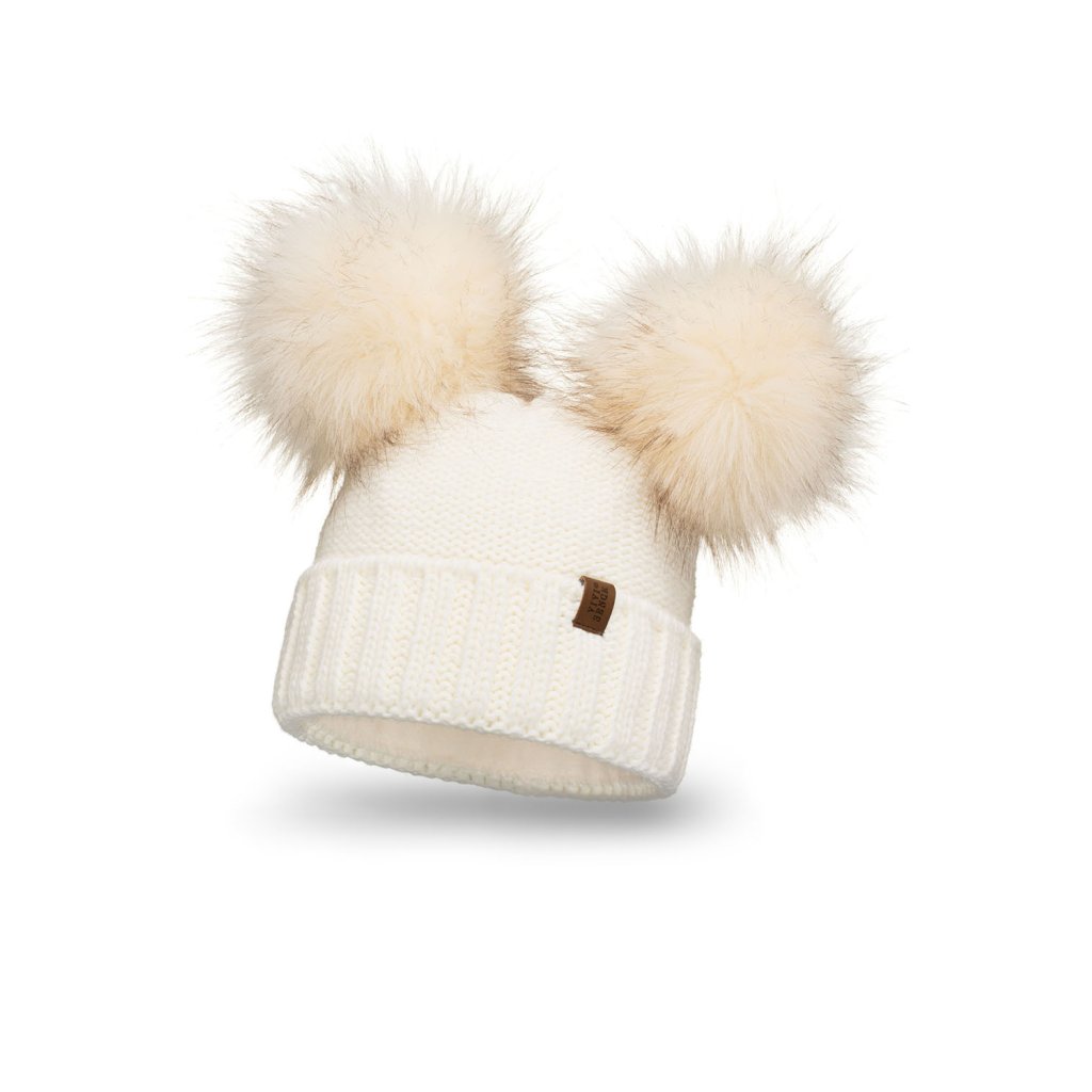 čepici zdobí dvě velké bambule z ekologických vláken.
