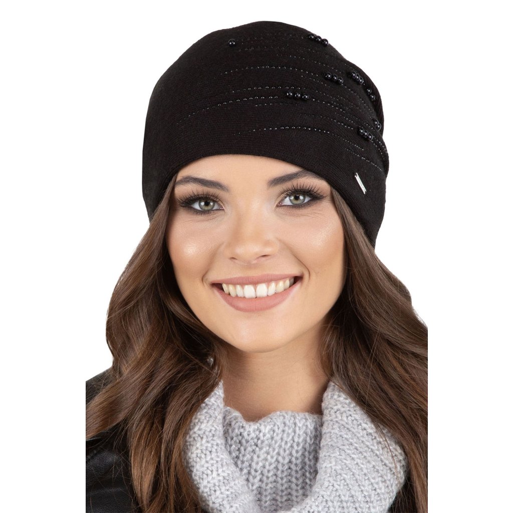 Stylová dámská čepice.- klasický střih- z hřejivé příze s příměsí vlny- přední strana zdobená zirkony a perlami- módní záhyby na zadní straně- dokonale padnoucí čepice- model s podšívkou- skvělý nápad na dárekSložení: Složení: 50% akryl, 30% vlna, 20% polyamid.