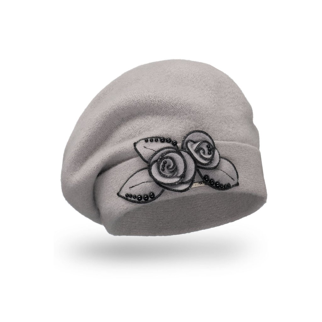 Ručně vyráběný elegantní dámská čepice. Při její výrobě byla použita vysoce kvalitní panenská vlna Woolmark®. Příze je certifikována podle normy Oeko-Tex. Čepici zdobí květinová aplikace s korálky. Vzadu má stahovací šňůrku a překrytí, takže krásně sedí na hlavě. Předností čepice je ruční výroba a vyšívané ozdoby, díky kterým je každý kus jedinečný. Více informací o produktu: Čepice je vyrobena z kvalitního materiálu, který je vhodný pro všechny typy výrobků:- malé logo na boku