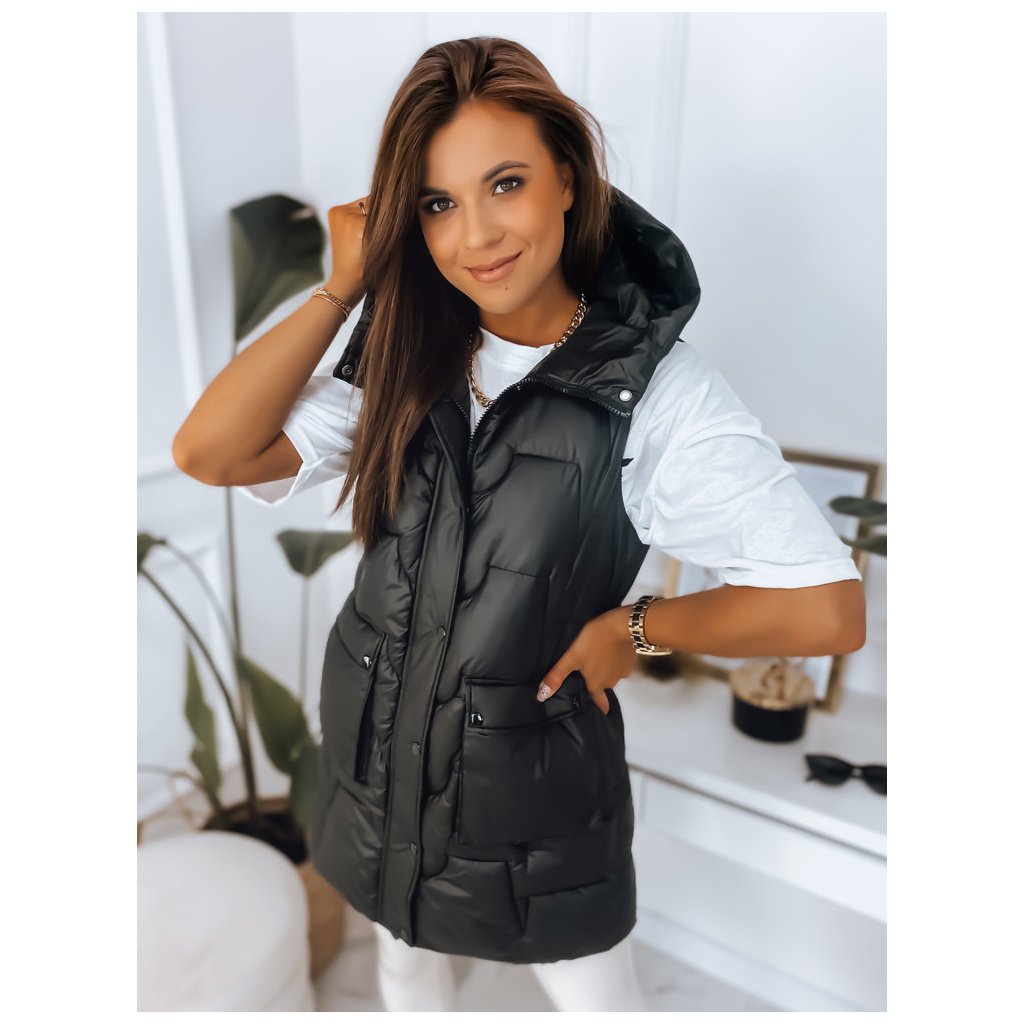 Černá dámská dlouhá prošívaná vesta s kapucí Dstreet TY2826