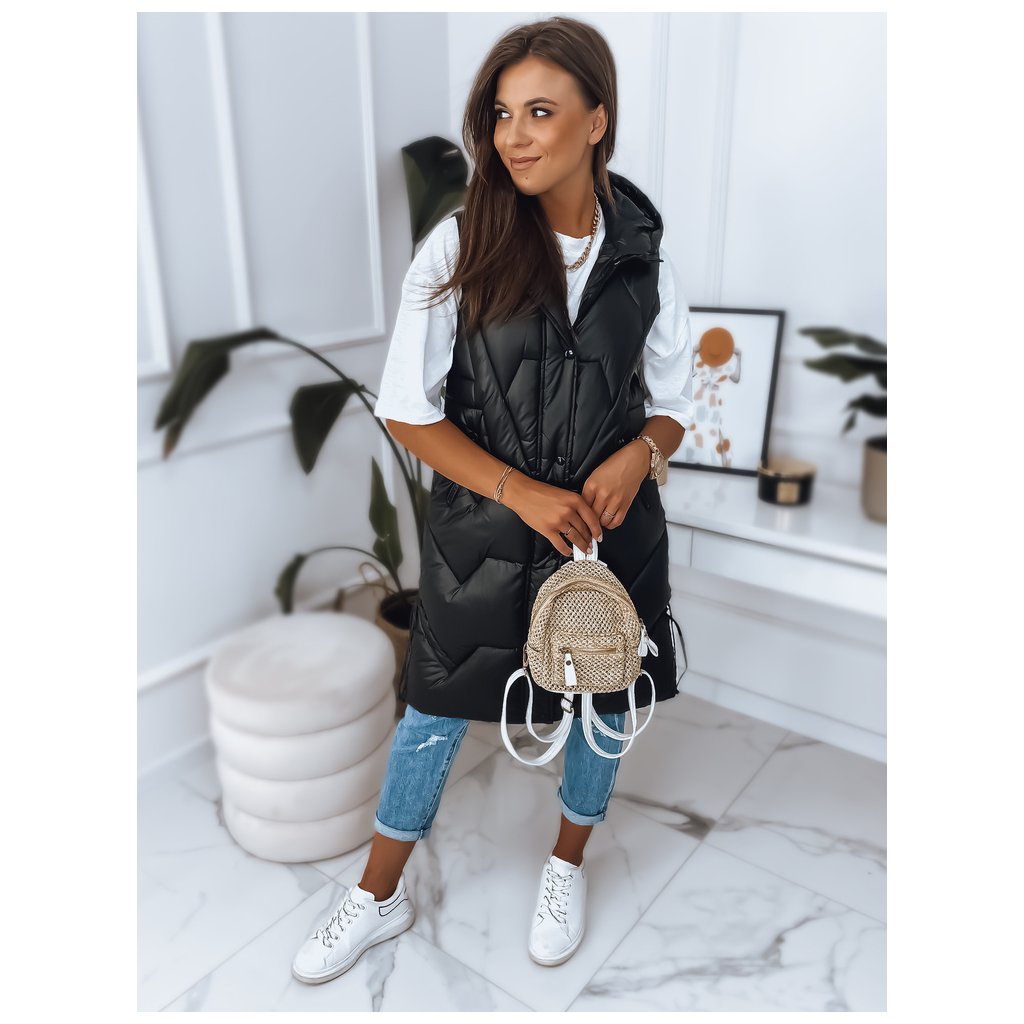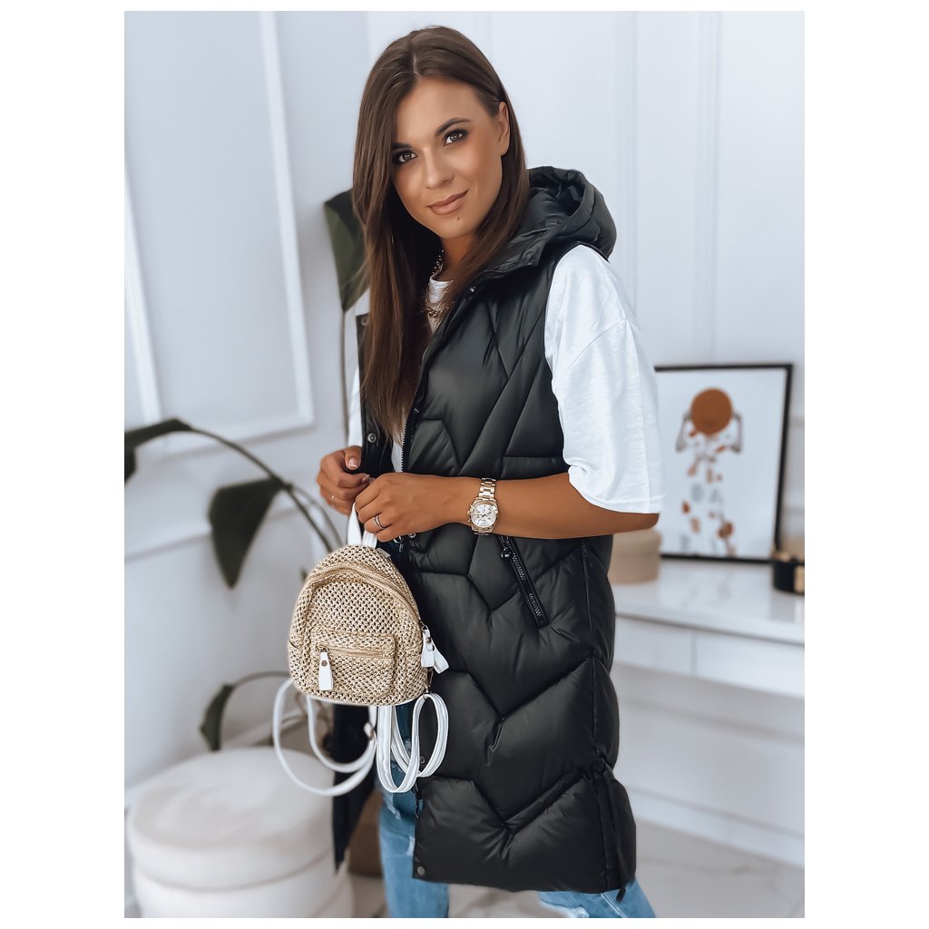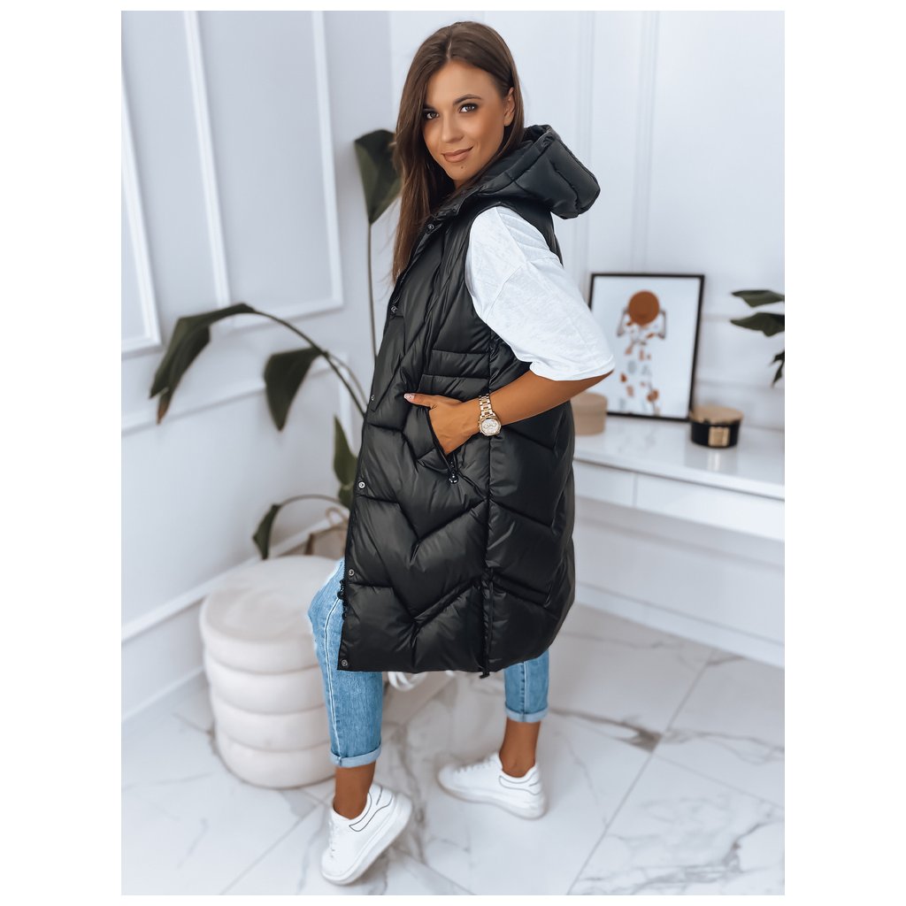 Černá dámská dlouhá prošívaná vesta s kapucí Dstreet TY2832