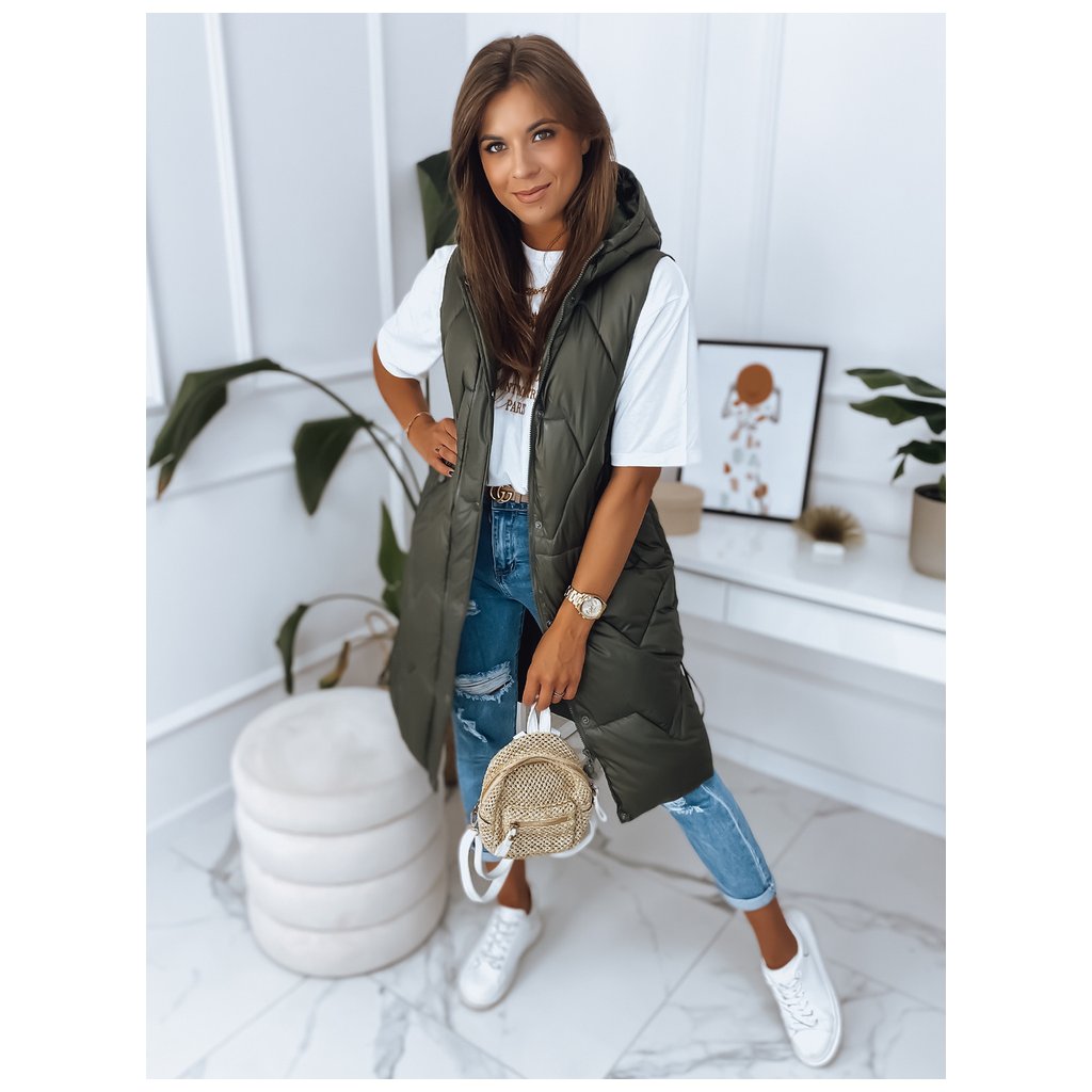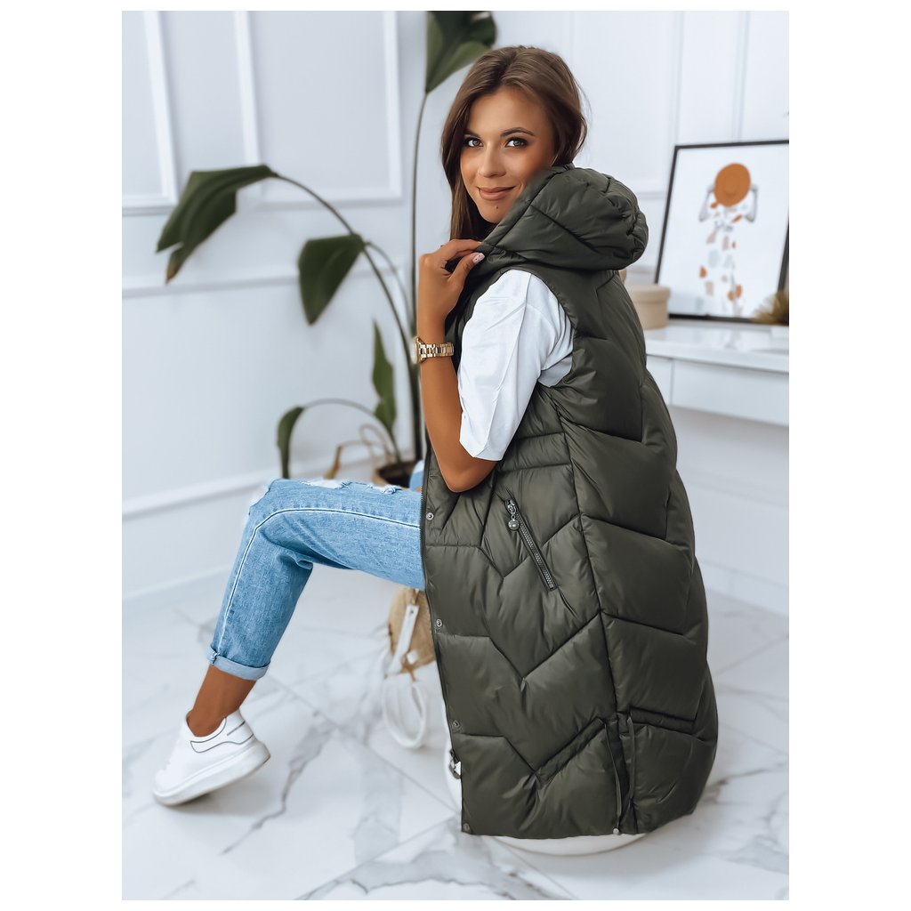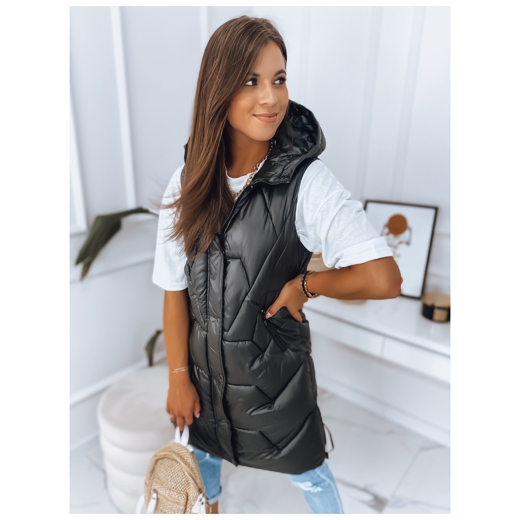 Černá dámská dlouhá prošívaná vesta s kapucí Dstreet TY2832
