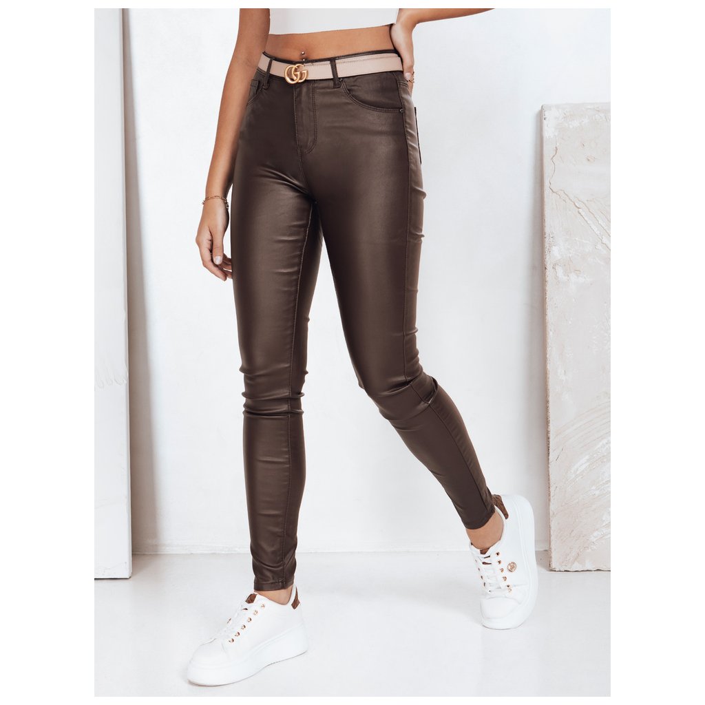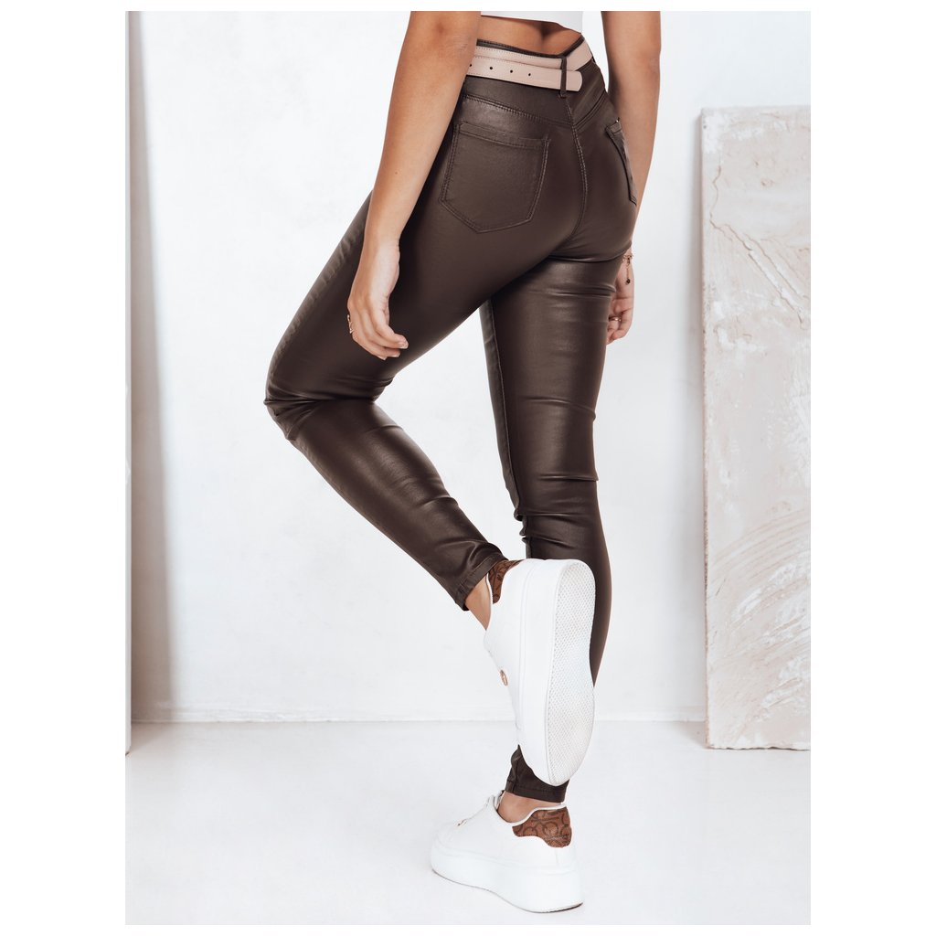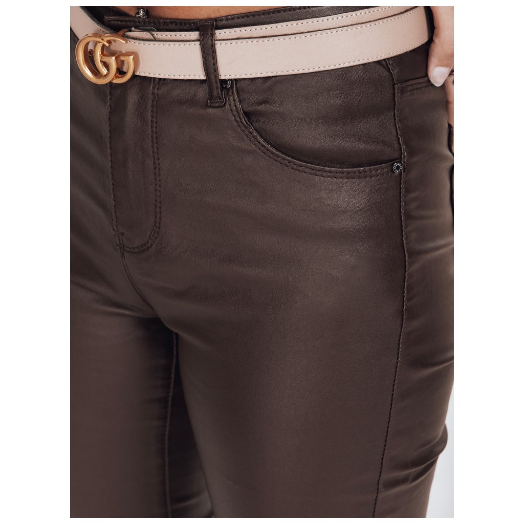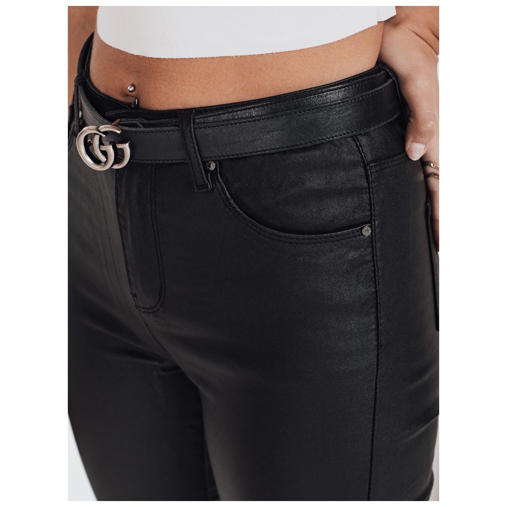 Tyto dámské úzké kalhoty z umělé kůže jsou dokonalou kombinací stylu a pohodlí. Přiléhavý střih lichotí postavě, zatímco pružný materiál zajišťuje volnost pohybu. Klasický povrch s předními a zadními kapsami dodává funkčnost. Ideální pro vytvoření moderního vzhledu pro každodenní i zvláštní příležitosti.