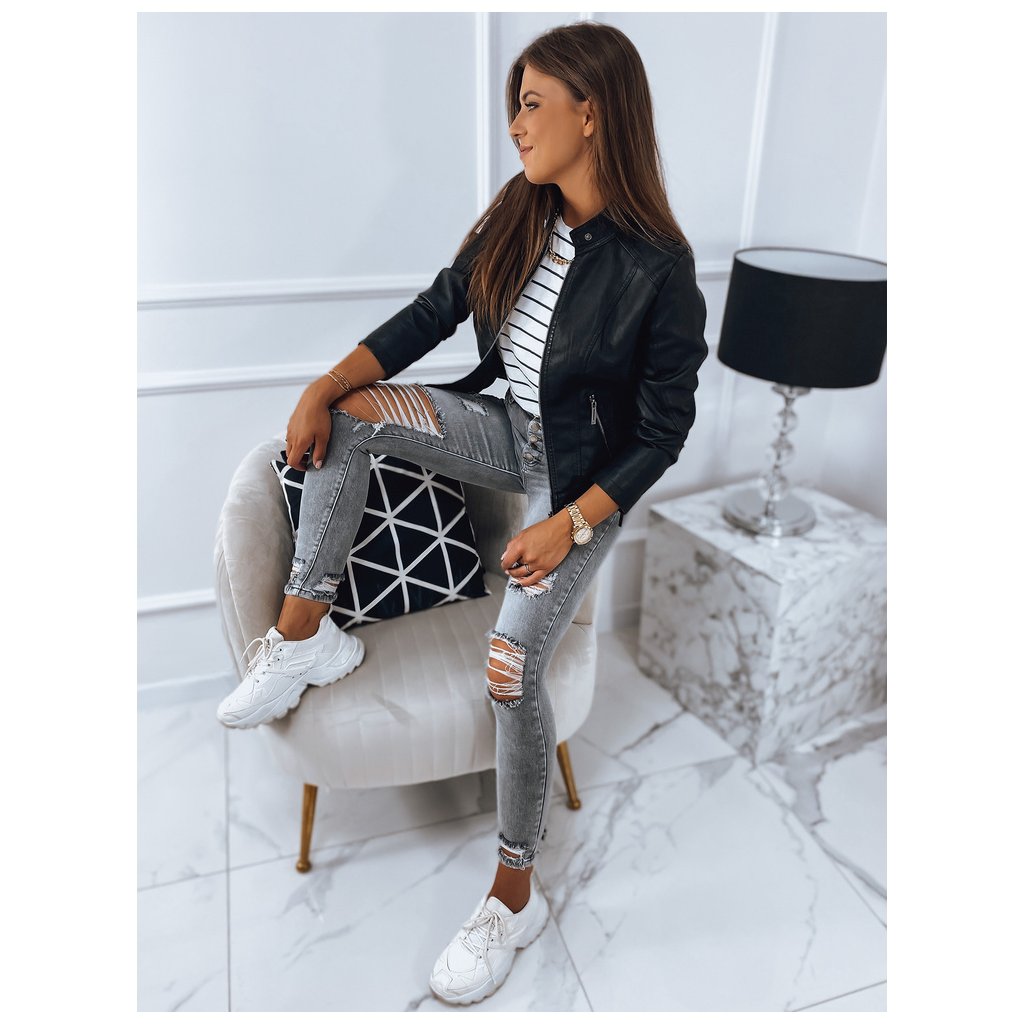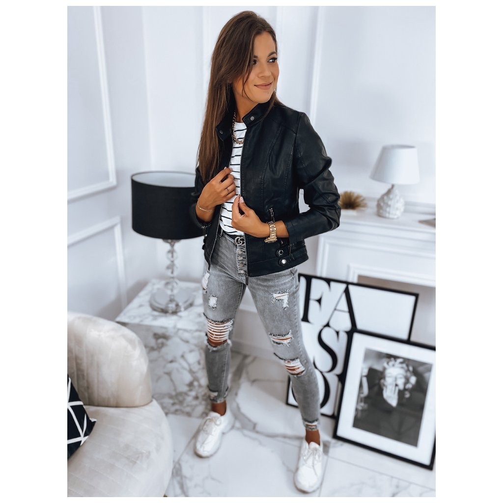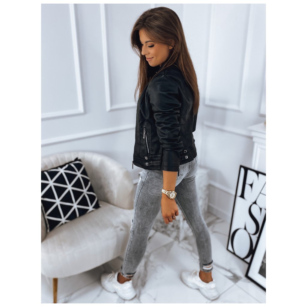 Černý dámský koženkový křivák bunda Dstreet TY2873
