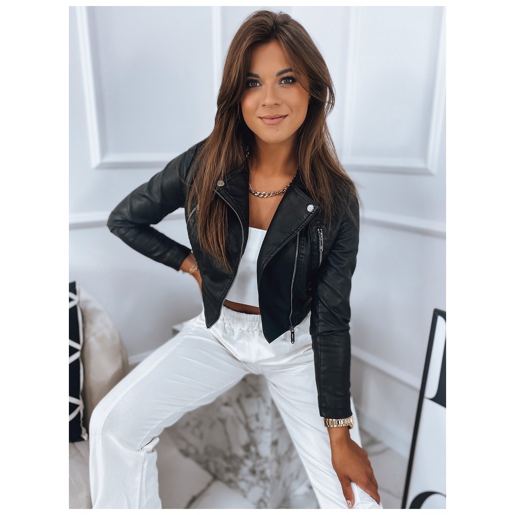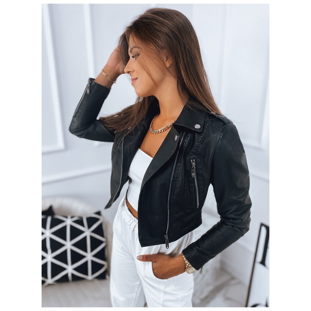 Černý dámský koženkový křivák bunda Dstreet TY2874