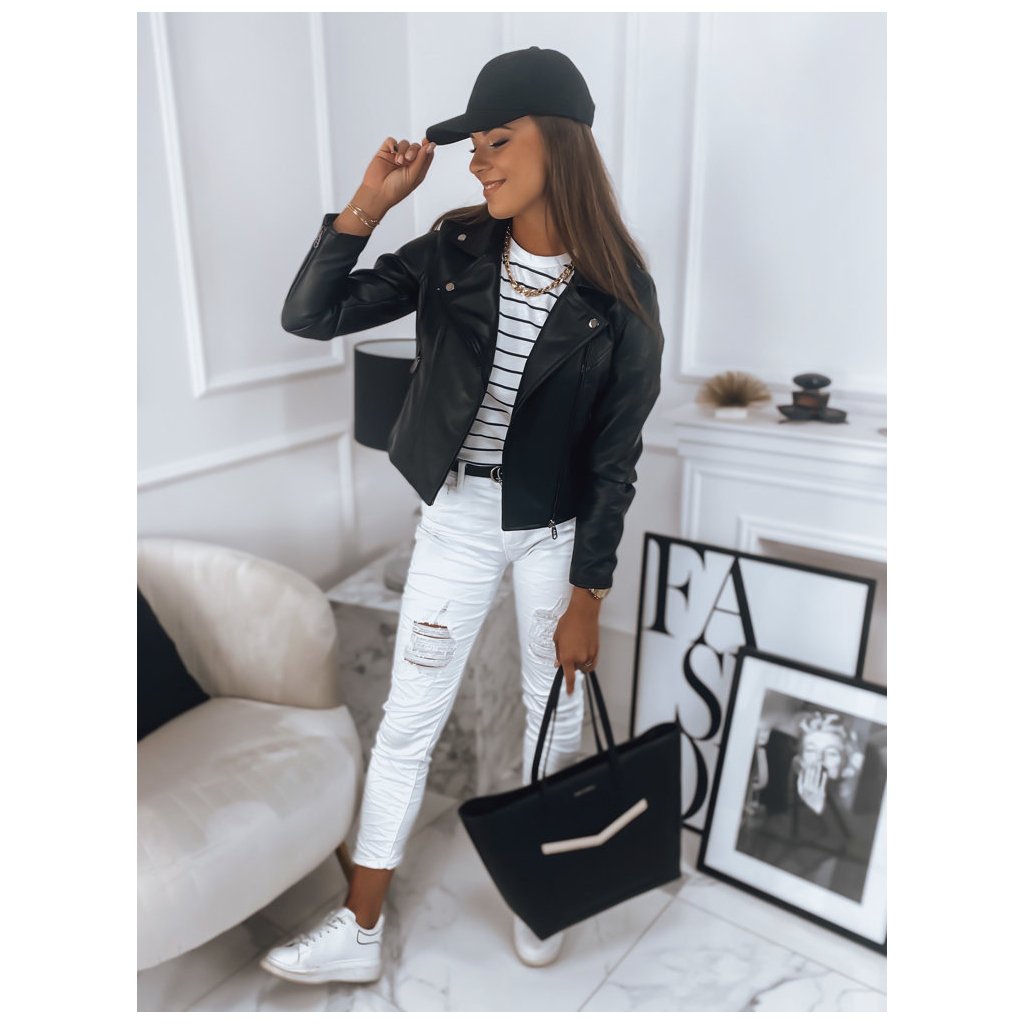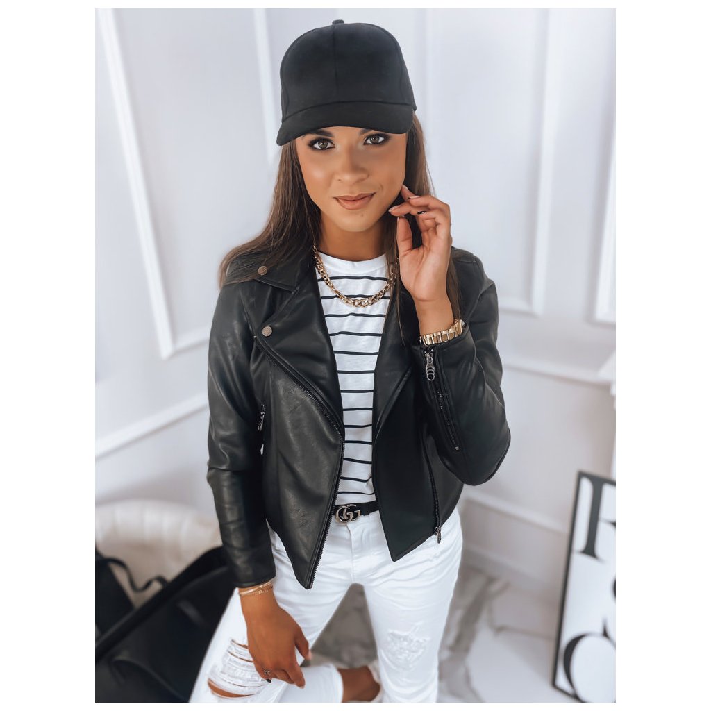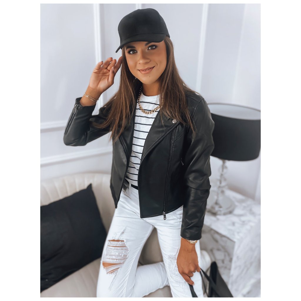 Černý dámský koženkový křivák bunda Dstreet TY2877
