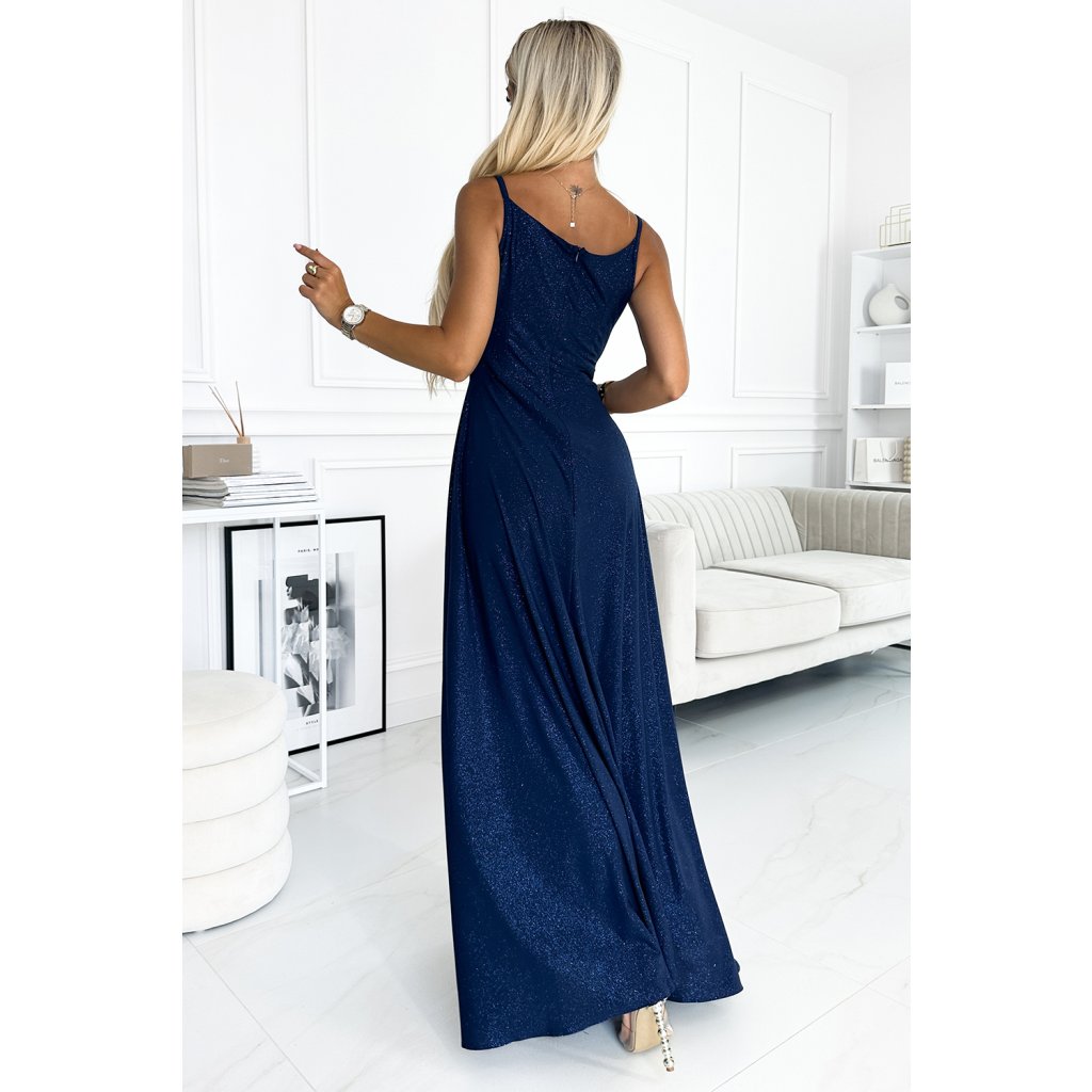 CHIARA elegantní maxi šaty na ramínka - tmavě modré se třpytkami 299-10